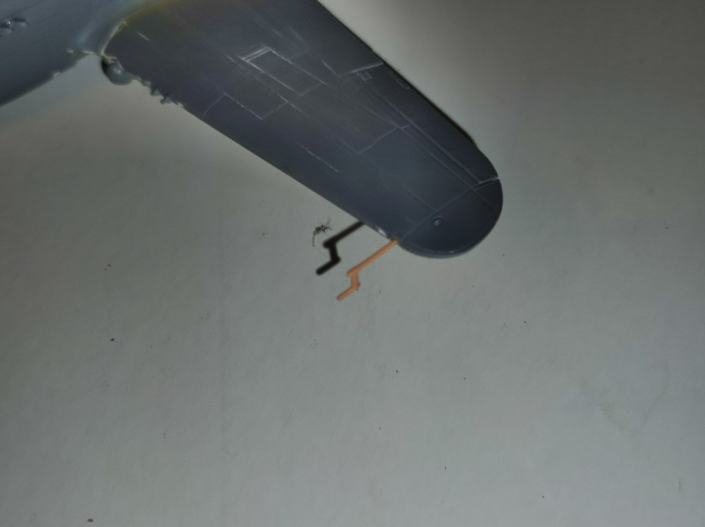 Auch das Pitotrohr habe ich zusammengesetzt. Bzw eine abgetrennt und in das Loch eingeführt.