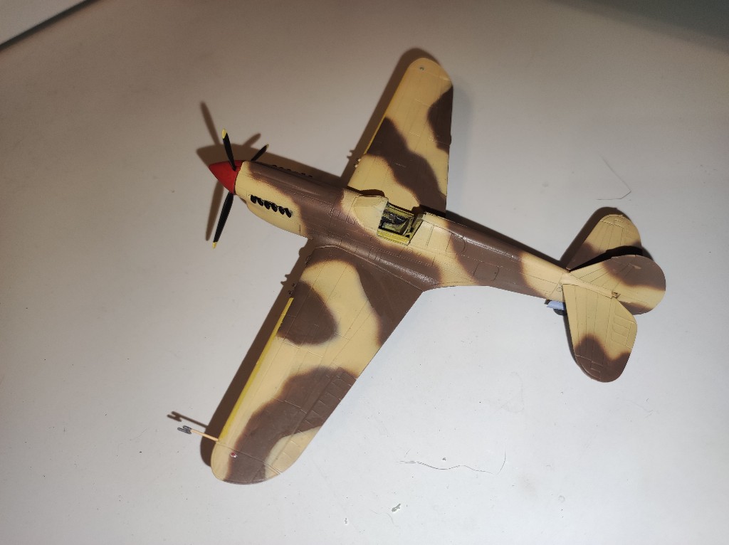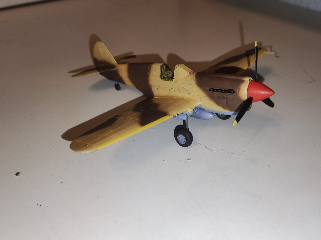 Die Curtiss P-40 war eine Weiterentwicklung der P-36, die ich vor etwas über einem Jahr ja auch gebaut habe. Der Sternmotor wurde nun durch ein Allison-Triebwerk ersetzt. Eingesetz wurde das Flugzeug von den US-Streitkräfte, der Royal Airforce und den Commenwealth, so wie in der Sowjetunion. Bei den brititschen Streitkräften war die P-40 unter den Namen Kittyhawk in verwendung. Zwar erreichte die Warhawk nie die Leistungen einer Messerschmitt, Spitfire oder gar eine Mustang, wurde aber trotzdem aufgrund des hohen Bedarfs an Jagdflugzeugen bis 1944 produktiert. Gerade der Allison V-1710 war nur bis etwa 5000 m Flughöhe zuverlässig einsetzbar. Zwar gab es auch zwei Versionen mit dem leistungsstärkeren Merlin-Motor, dieser wurde aber dringender für die Mustang gebraucht und so wurden diese nur kurz gebaut. Das Flugzeug wurde vorallem im Mittelmeer und Pazifik relativ erfolgreich verwendet, in Westeuropa fand sich keine Warhawk wieder.