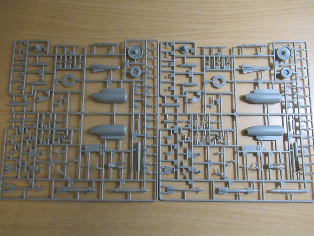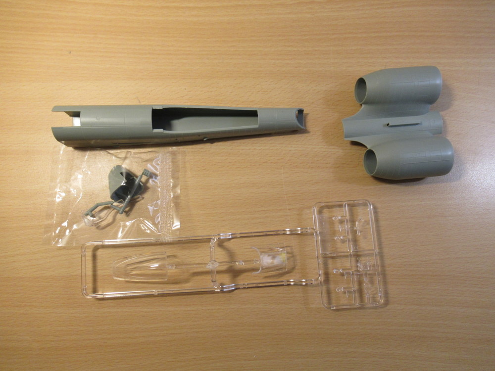 Wir haben hier 9 Spritzlinge plus Glasteile / Rumpf / Triebwerk .