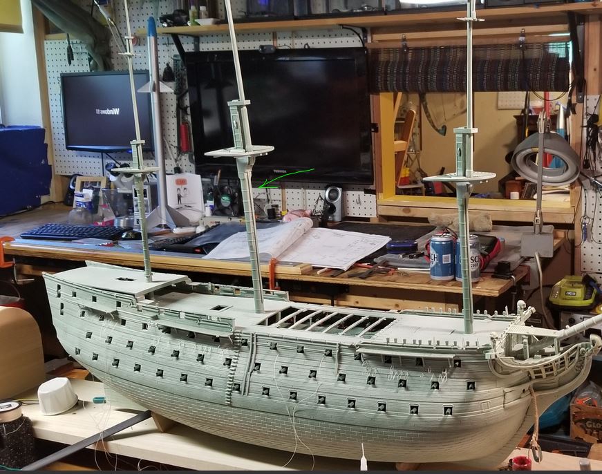 Ja, denke ich auch. Der 2 und 3 Mast, sitzt der Ring auf dem Deck. Dann wird es bei dem 1 Mast  auch sein.