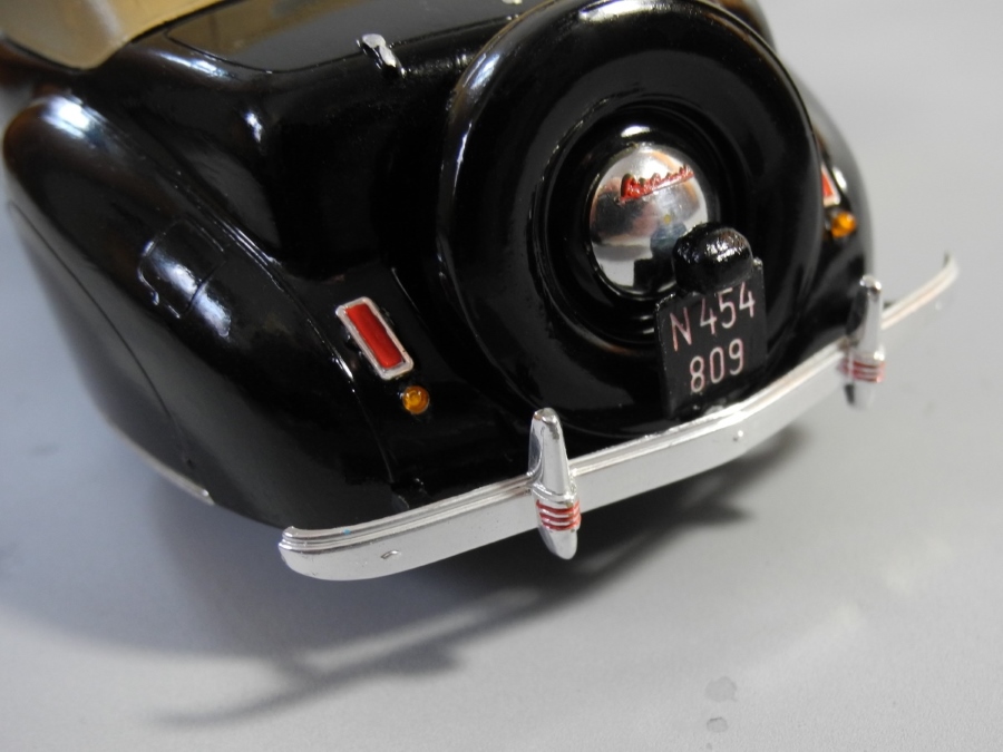 Weil ich anno 78 die Parkinglights mit Emaillack sehr haltbar orange gefärbt habe, wurde bei der Renovierung ein im späteren Nachkriegsösterreich zugelassener Oldtimer. Das mußte dann auch hinten so werden: