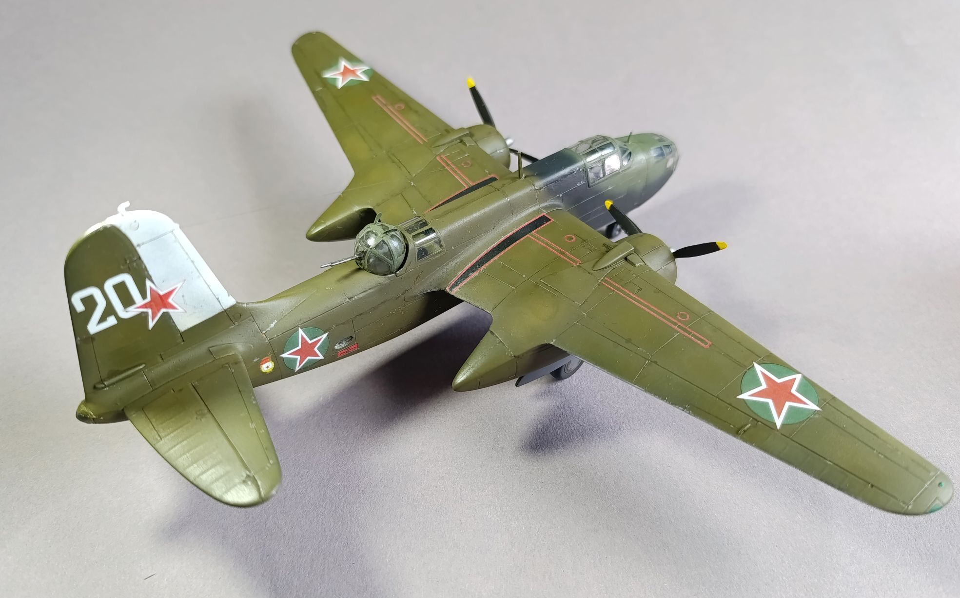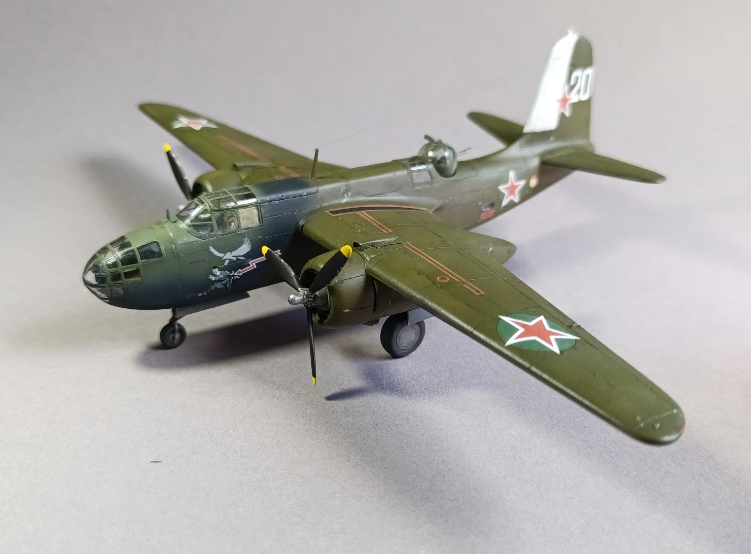 ein weiteres Projekt welches schon vor über einen Monat fertiggestellt habe, war die Douglas A-20, welche im Rahmen des Land and Lease Programms in die Sowjetunion gelangte. Da war sie dann Teil des 8. Garde-Bobmerregiments, wo sie von Mitte 1944 bis zum Kriegsende in Polen und letztlich in Berlin teilnahm.