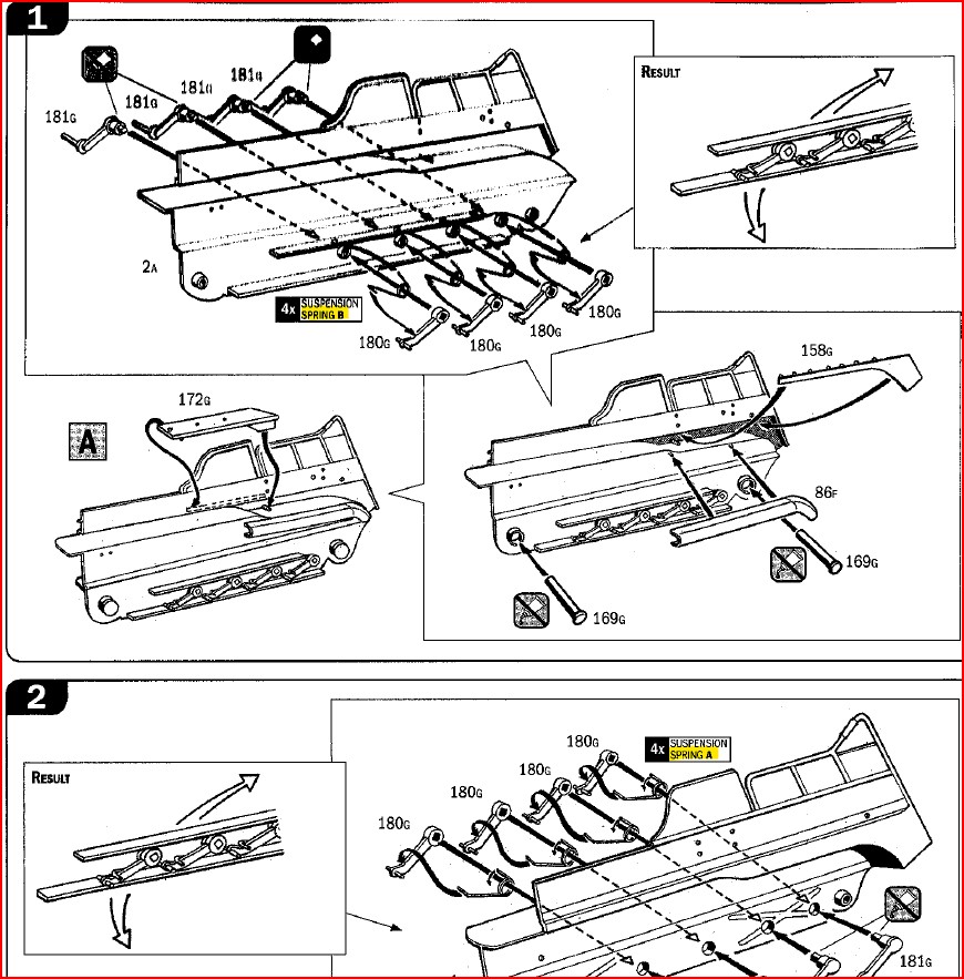 Bei Italeri werden die Federn sogar unterschieden zwischen links und rechts (spring A / Spring B):