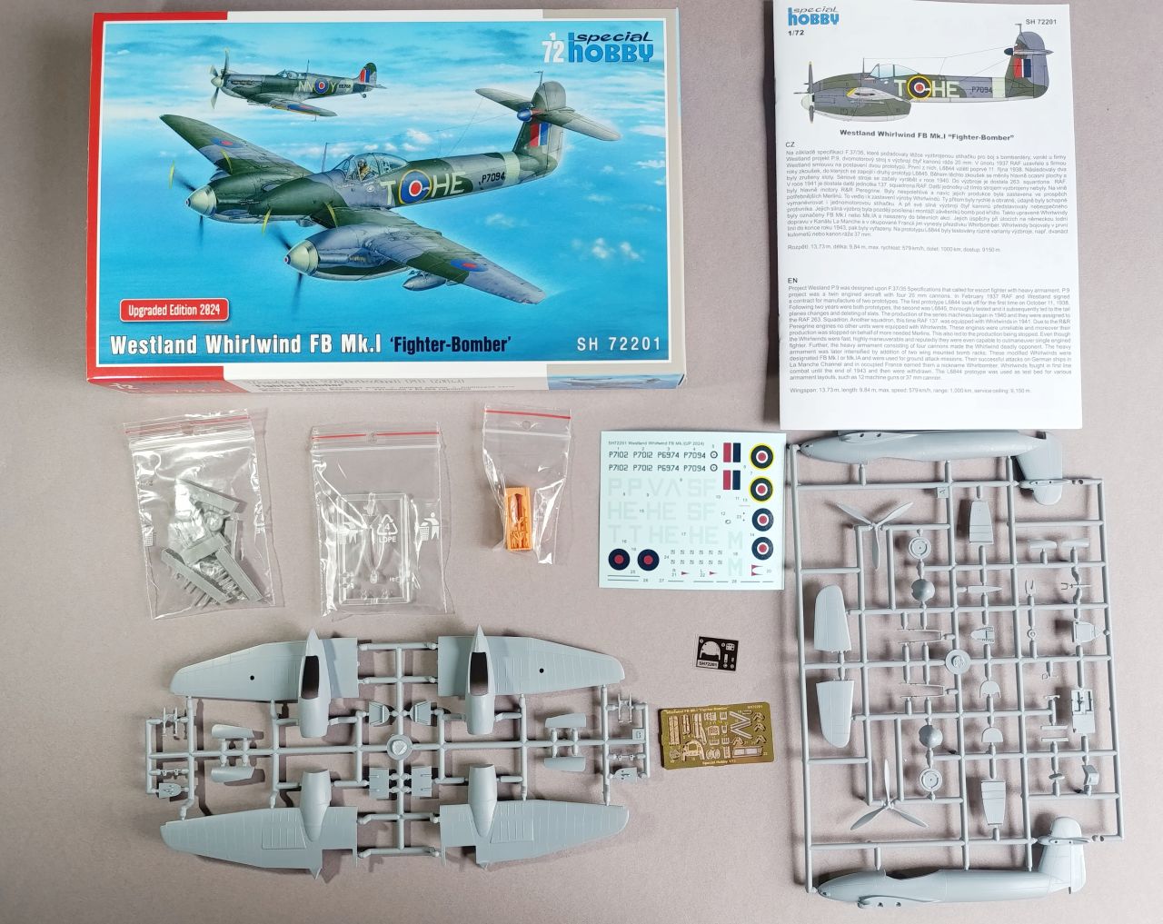 Special Hobby hat vor kurzem den britischen schweren Jäger Whirlwind in seiner späten Rolle als Jagdbomber veröffentlicht. Der Bausatz ist schon etwas älter und stammt noch aus der früheren Short-Run Zeit des Herstellers, trotzdem bin ich zuversichtlich hier Zeitnah ein ergebnis vorzeigen zu können. :thumbup:
