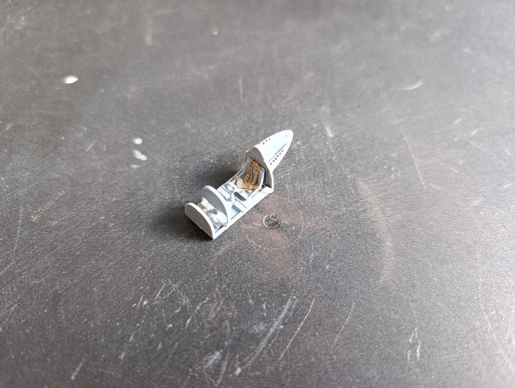 Los ging es mit dem Innenleben. Hier wurden vorallem PE-Teile, aber auch ein Klarsichtfilm, für die Instrumente und ein paar Resinteile verbaut.