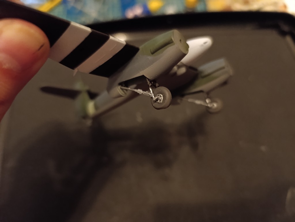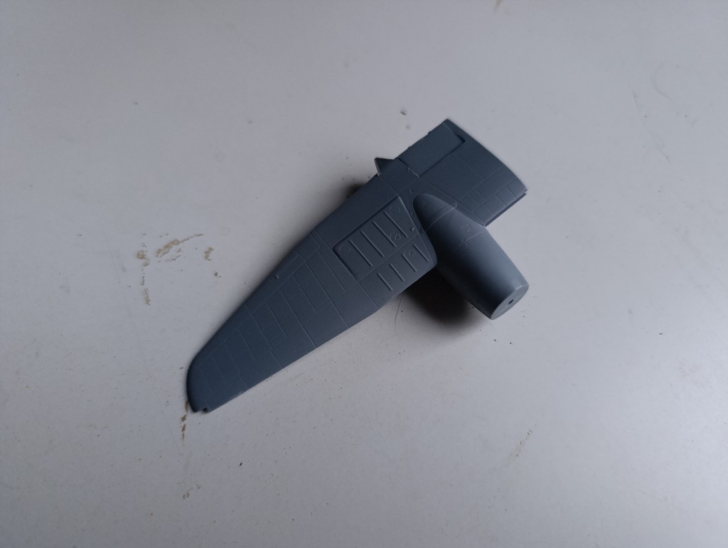 Als nächstes werde ich die Übergänge zum Rumpf bearbeiten und die Strukturen nachgravieren. Übrigens Verbrachte ich dann eine ganze Weile damit, das abgefallenen Spornrad zu suchen (Erfolgreich ;))