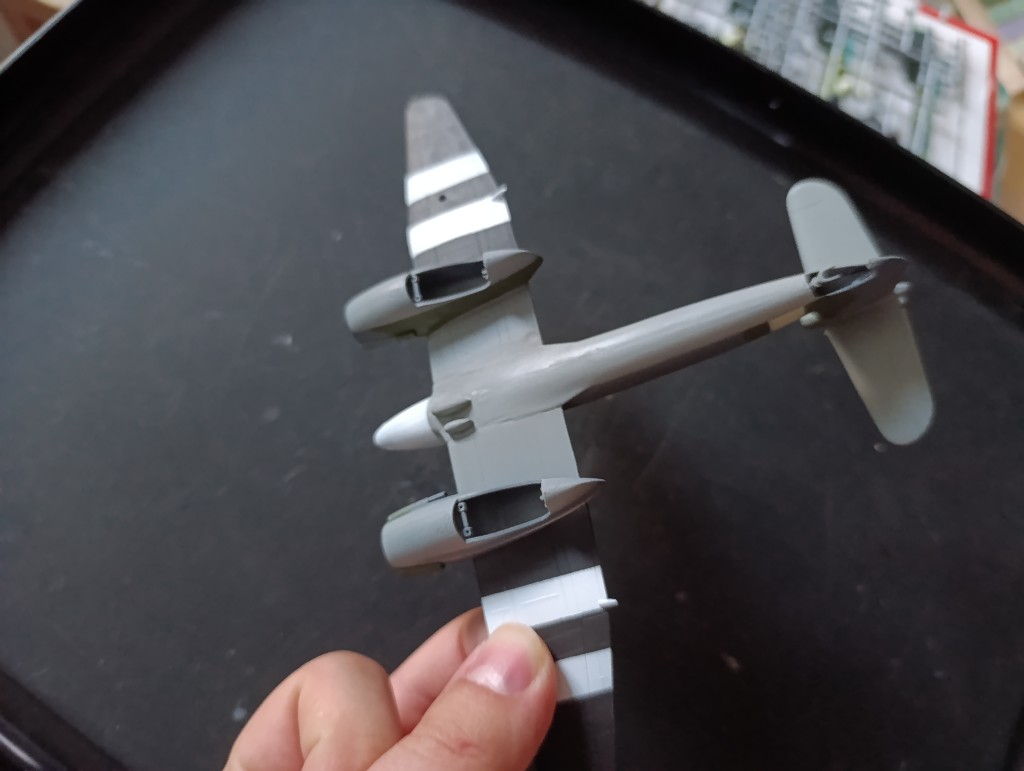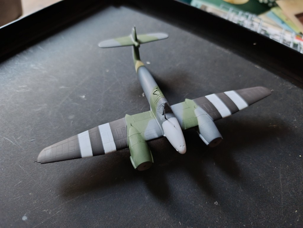 Die Invasionsstreifen waren eine kleine Herausforderung da ich die exakte Breite berechnen musste und auch sauber abgekleben wollte, denn schon kleine Unstimmigkeiten können dieses Muster stören. Aber sowohl oben als auch unten ist es fast perfekt geworden.