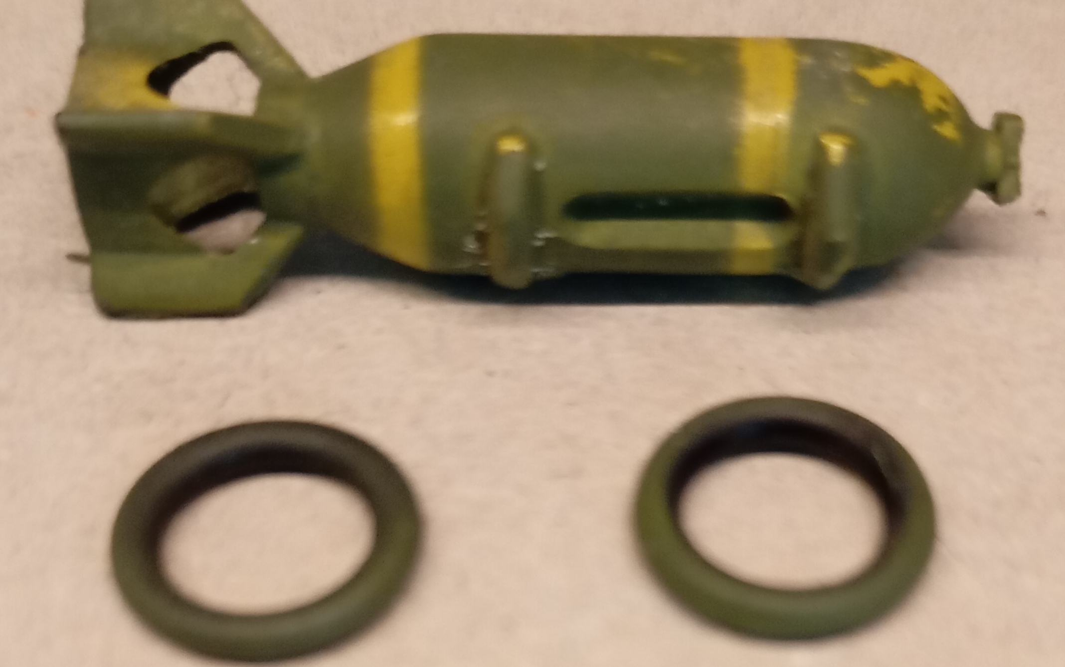 Ach ja und dann die Farbe für die Bombe lackieren und die O-Ringe nach dem trocknen abziehen