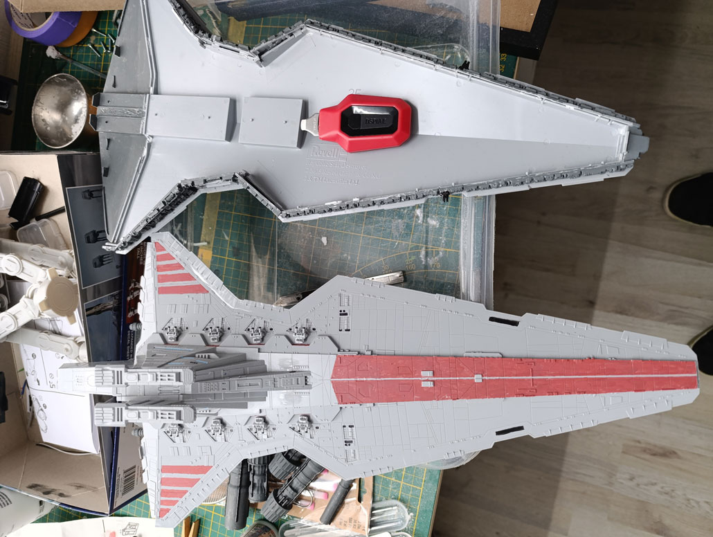 Ich hatte bisher immer den Eindruck das gerade der Contacta vergleichsweise wenig verschmilzt und ihn fast auf eine Stufe mit Sekundenkleber gestellt. Hab es jetzt doch mit roher Gewalt (und teiweise etwas Tamiya Extra-Thin per Pipette in die Ritzen) versucht und auch wenn es sich insgesamt etwas schöner hätte lösen können, auf ist auf