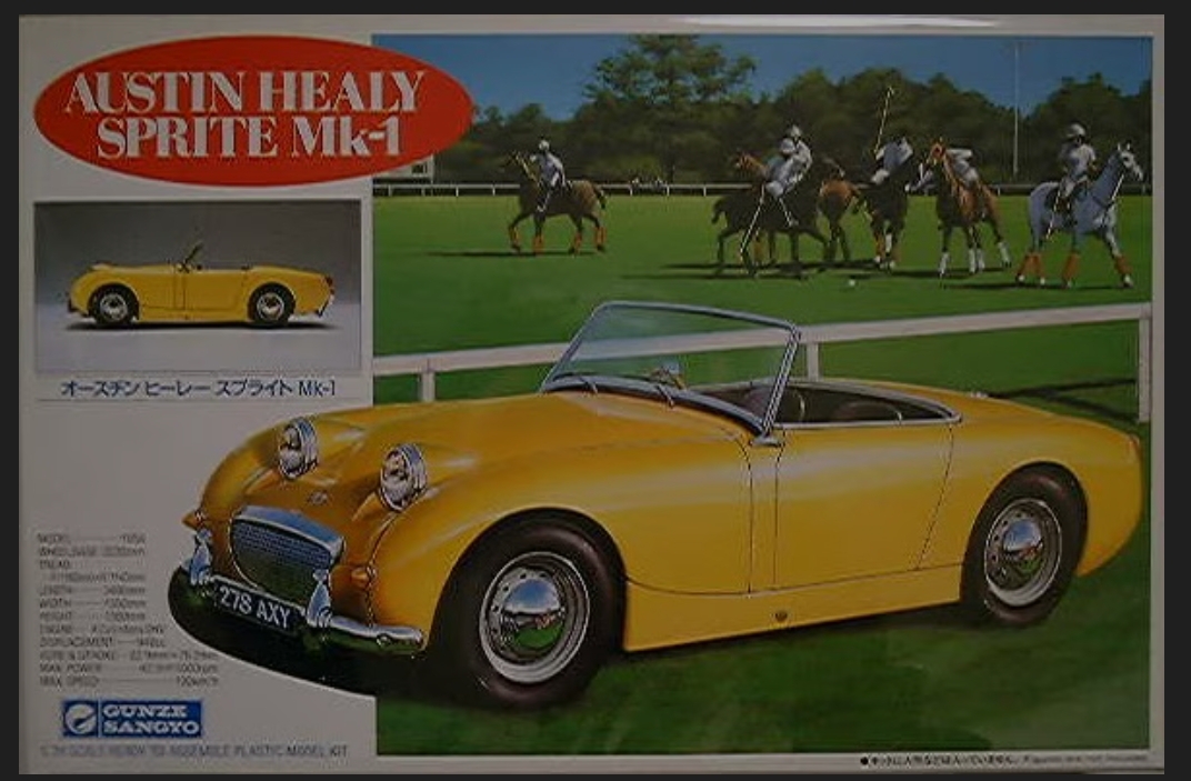 Der Austin Helay Sprite in der ersten Version erschien 1958 in England und wurde bis 1961 gebaut. Der 0.95 Liter Motor von Austin erreicht mit 44 PS immerhin 133 km/h, wobei mehr möchte ich mit dieser Nussschale auch nicht fahren, denn der Name Sprite (Engl. Kobold oder Elfe) ist hier Programm: Nur 630 kg schwer und gerade Mal 1,20m hoch. Ich kann euch sagen, wenn man vor diesem Auto steht, fragt man sich wozu die Türen sind, denn mit einem großen Schritt kann man sich bequem rein setzen. Also der Roadster auf den Markt kam, kostete er um die 670£, das sind laut ChatGTP heute ungefähr Inflationsbereinigt etwas 15500 bis 17000€. Aufgrund der Frontscheinwerfer würde das Fahrzeug auch als Froschauge bekannt.