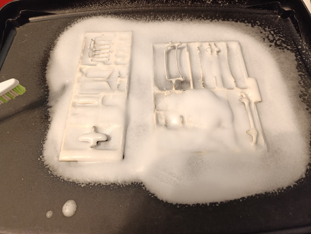 Wie der Zufall will habe ich ein erst dieses Jahr erschienenes Detailset gefunden und beim Hersteller direkt in Australien bestellt. Tatsächlich dauerte es nicht ganz 10 Tage bis ein Karton der Australien Post bei mir eintraf. Dieser Sets ergänzt das Modell nochmal um dutzende sauber gegossene Resinteile für Motor, Unterboden und Reifen. Zu haben übrigens normal über eBay.
