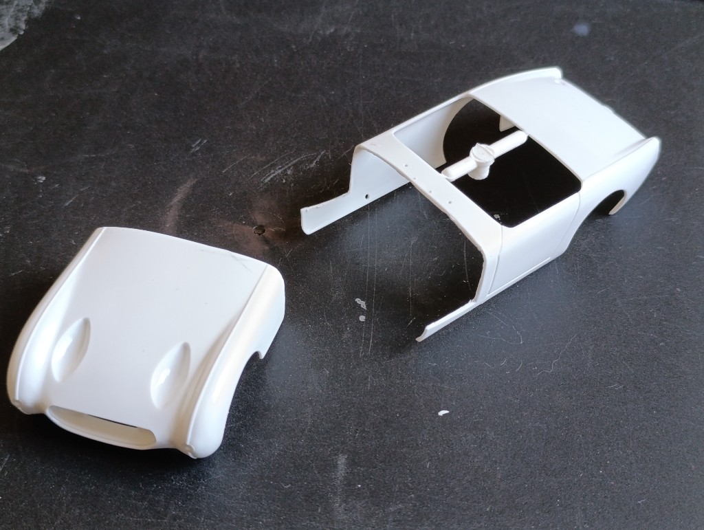 Der Bausatz von Gunze macht an sich erstmal nicht viel her und ist eher einfach gehalten. Erschienen bereits 1985 und in dieser Auflage 1992 auf den Markt erschienen. Die Teile sind sauber und übersichtlich. Das Fahrzeug besteht zu einem Großteil nur aufs dem Fahrzeug Oberteil, ergänzt durch den Fahrgastbereich. Hierfür reichen auch nur die Wanne und Unterseite, zwei weiße Gußrahmen, zwei verchromte Guß Rahmen und einen Gußrahmen mit Weichplastik. Aber das reicht mir persönlich nicht:
