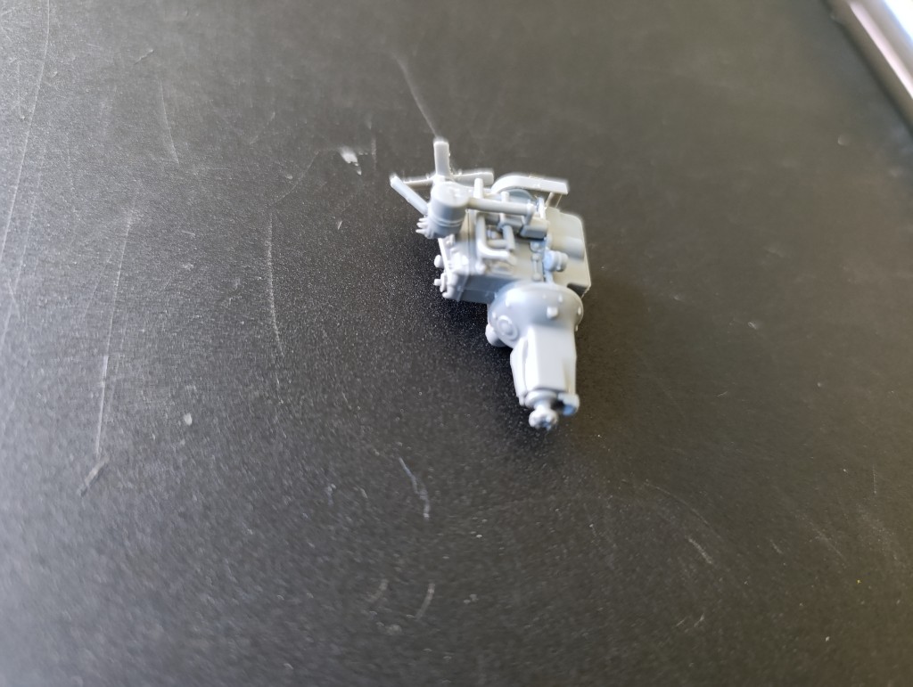 Getriebe und auch die Kardanwelle wurden bemalt auch der Motor hat ein paar schöne Details erhalten.