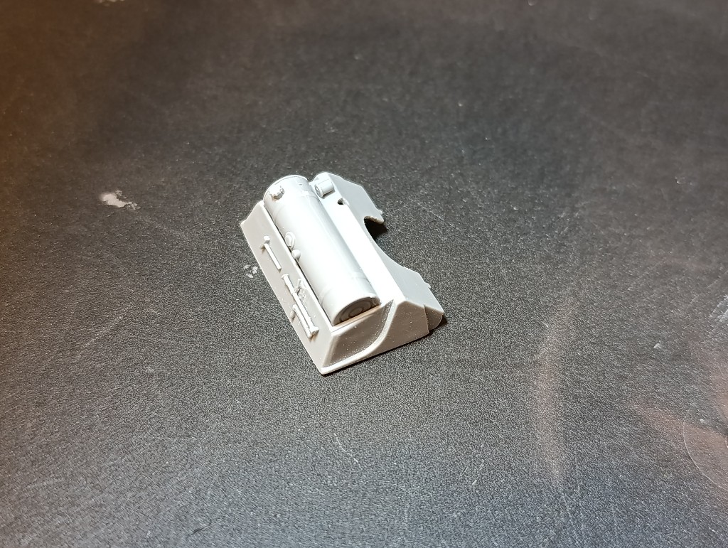 Die Motorrückwand mit Tank ist eingesetzt wurden. Das ganze ging so gut, dass es eigentlich auch ohne Kleber gehalten hätte.