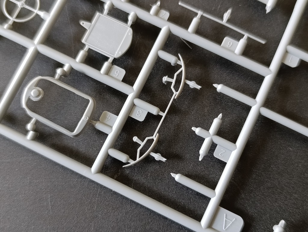 Was halt wirklich anstrengend ist, sind die vielen Angusspunkte an den zum Teil sehr filigranen Teilen wie hier bei der Stoßstange.