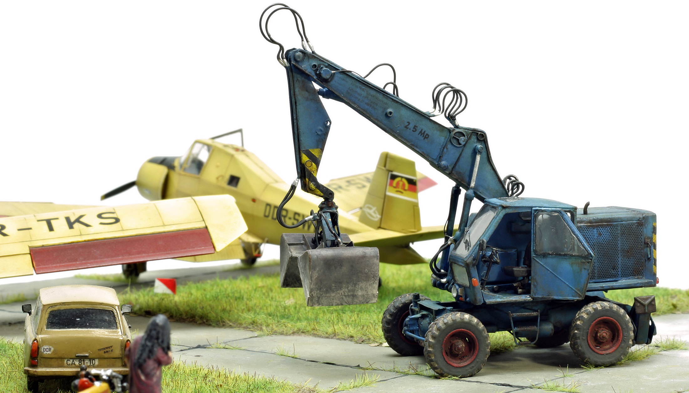Für das Diorama habe ich versucht, einen Ausschnitt vom Original-Flugfeld aus meiner Heimat darzustellen. Heute ist dort live kaum noch etwas zu erkennen, aber es gibt historische Luftaufnahmen von 1991 (siehe letztes Bild). Die Basis besteht aus einer Hartschaumplatte, die Betonplatten sind Pappkarton und das Gras ist mit nem selbst gebauten Gras-Applikator (aus einer elektrischen Fliegenklatsche) aufgetragen.