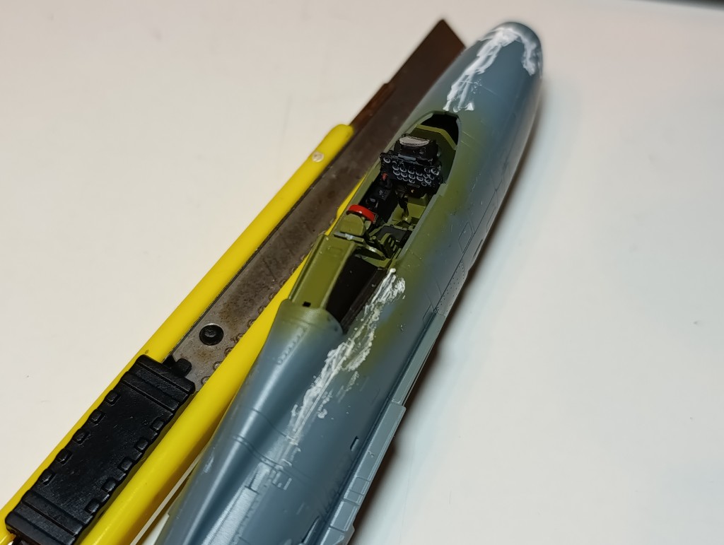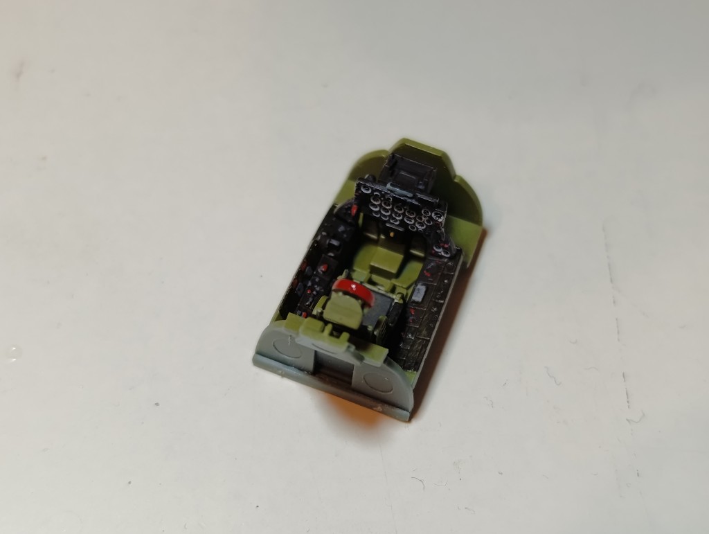 . Der obere Rücken ist nun auch angebracht. Hier auch nochmal ein Blick ins Cockpit bevor es unter dem Cockpit verschwindet.