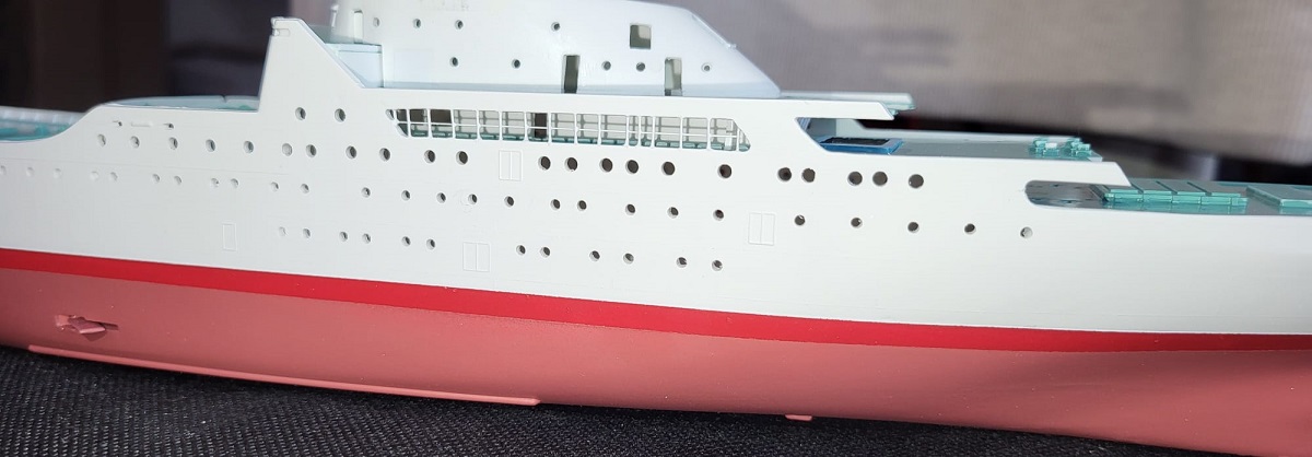habe mich entschlossen nicht den Kleber zu benutzen aber die Blaue linie zu mahlen, auch werde ich Sie mit geschlossener Laderaume darstellen