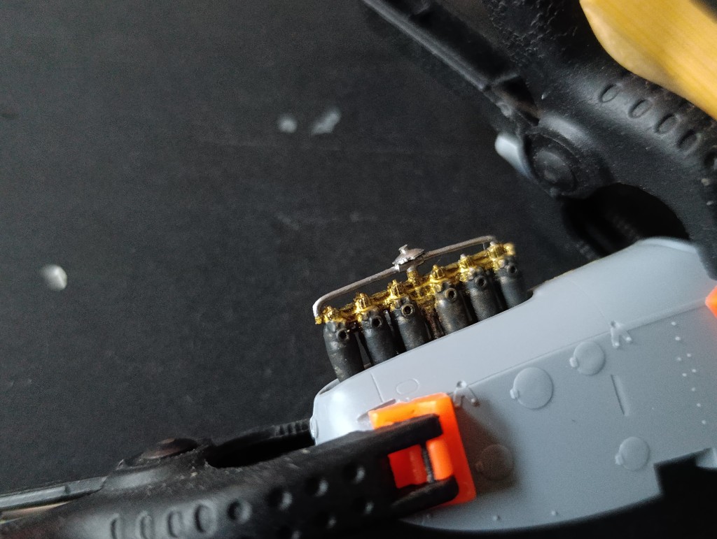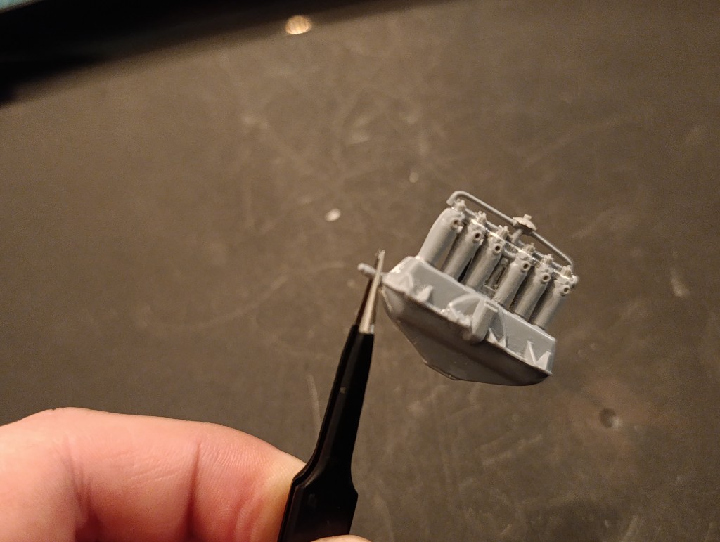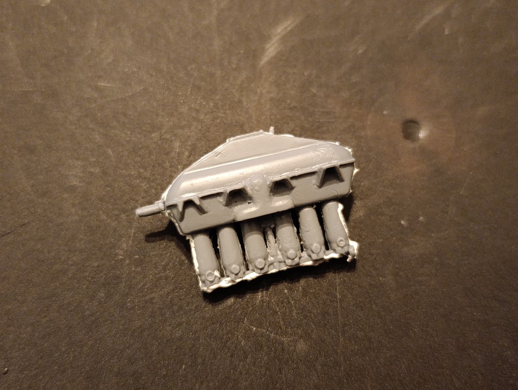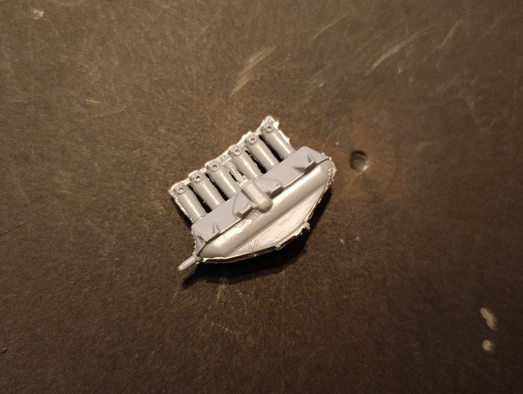 Der Motor wurde dahingehend verbessert, dass ich Patronentaschen in 1:35 zerschnitten habe und nun die neuen Zylinderköpfe darstellen.
