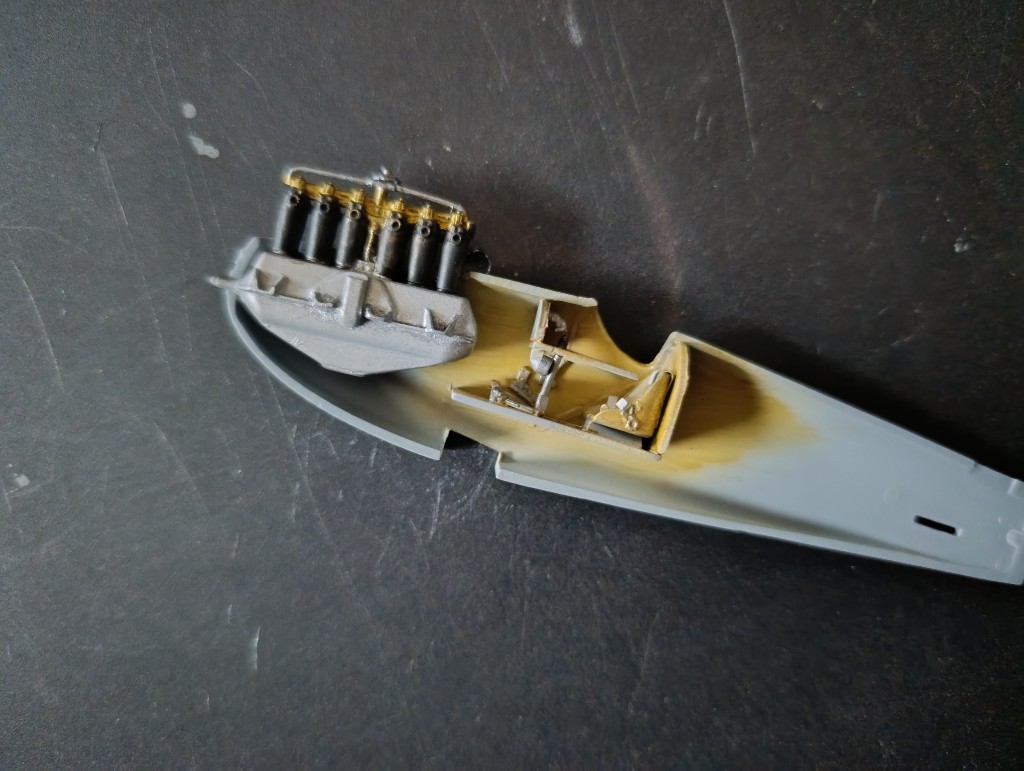 Da es in 1:48 ist, würde ich den Motor detailliert bauen. Im Netz findet man sehr viel Bilder vom Hiero - Motor bzw. seiner Ausgangskonstruktion, dem Austro Daimler. Ansonsten war das Kurbelgehäuse aus Aluminium und die angeschraubten Zylinder aus Gusseisen.
