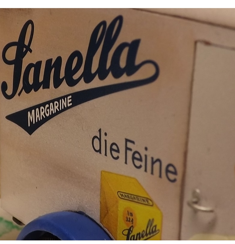 Im Gegensatz zur weiß/blauen Farbgebung des Sanella-Trucks gestaltete ich die hintere Türe als Austauschersatzteil. Hierzu lackierte ich diese in Butterkeks-Gelb und versah sie mit den Bahlsen-Decals der Keksversion des kleinen Dreirades. Ich dachte, das bringt etwas Farbe ins Modell. Die Türe stellte ich im Endeffekt geöffnet dar. Da ich die folgenden Bilder noch bearbeiten muss, ist für heute Ende Gelände.