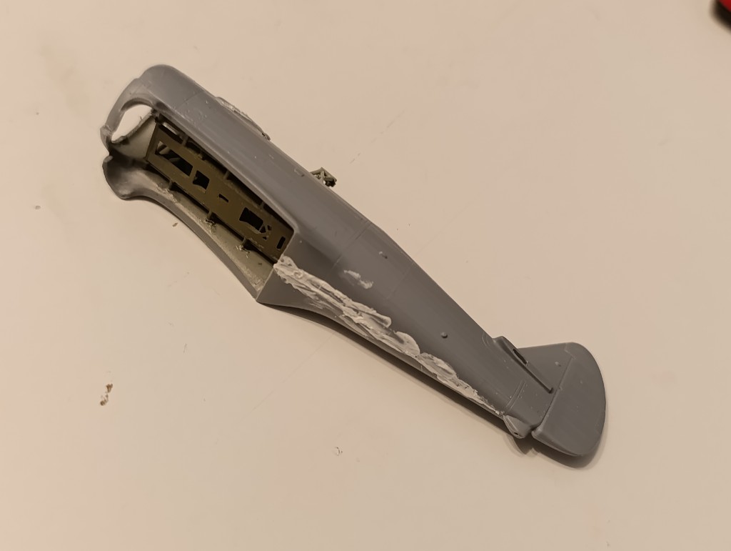 Ich war weiterhin fleißig und habe an der Wirraway weiter gemacht. Zunächst die Rumpfhälften zusammen gesetzt. Hier war es schwierig weil es für das Innenleben keine Passhilfen gab und abgeschätzt werden musste.