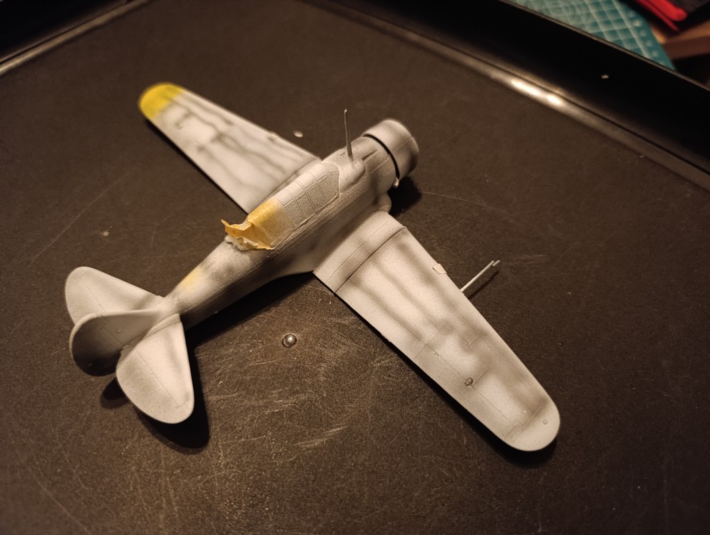 Nun war das endlich soweit, die Wirraway kam zum Lackieren. Die Grundierung dieses Mal weiß gehalten mit grauen preshading