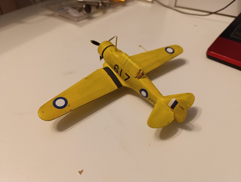 Jetzt geht es an die Abziehbilder, sowie viele sind es aber nicht und dann geht der Flieger in die Endfertigung.