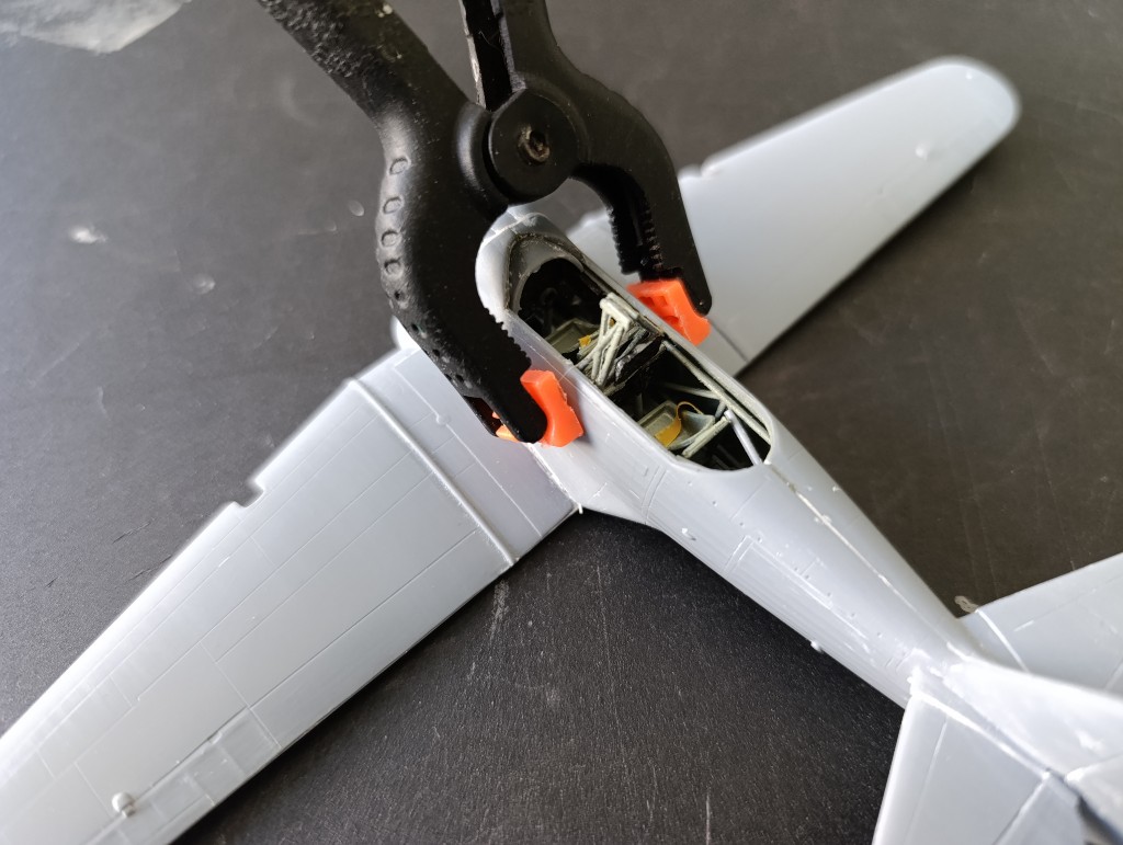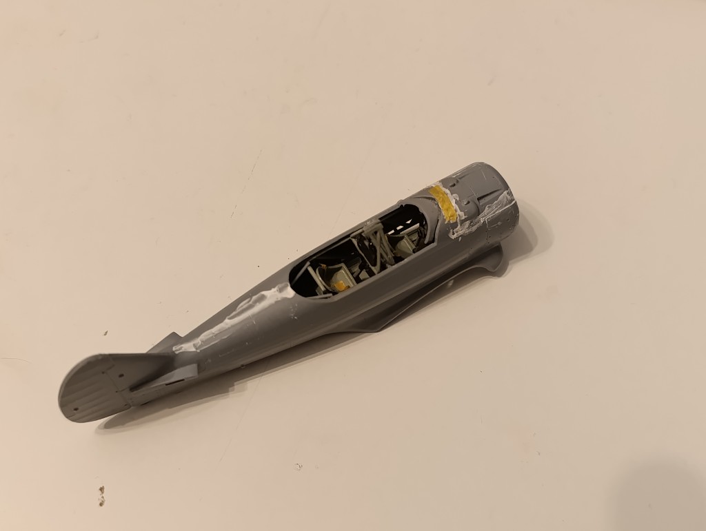Ich war weiterhin fleißig und habe an der Wirraway weiter gemacht. Zunächst die Rumpfhälften zusammen gesetzt. Hier war es schwierig weil es für das Innenleben keine Passhilfen gab und abgeschätzt werden musste.