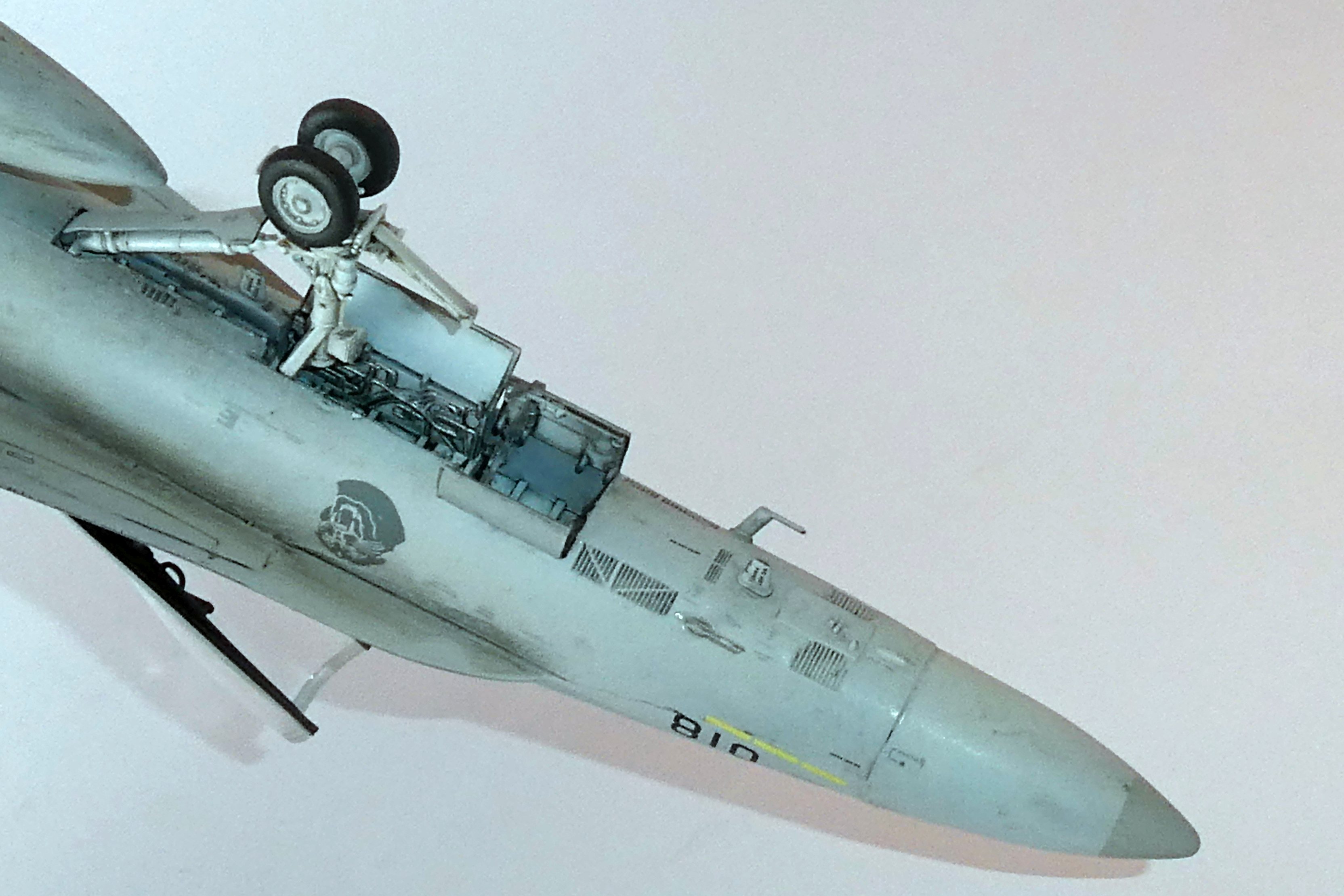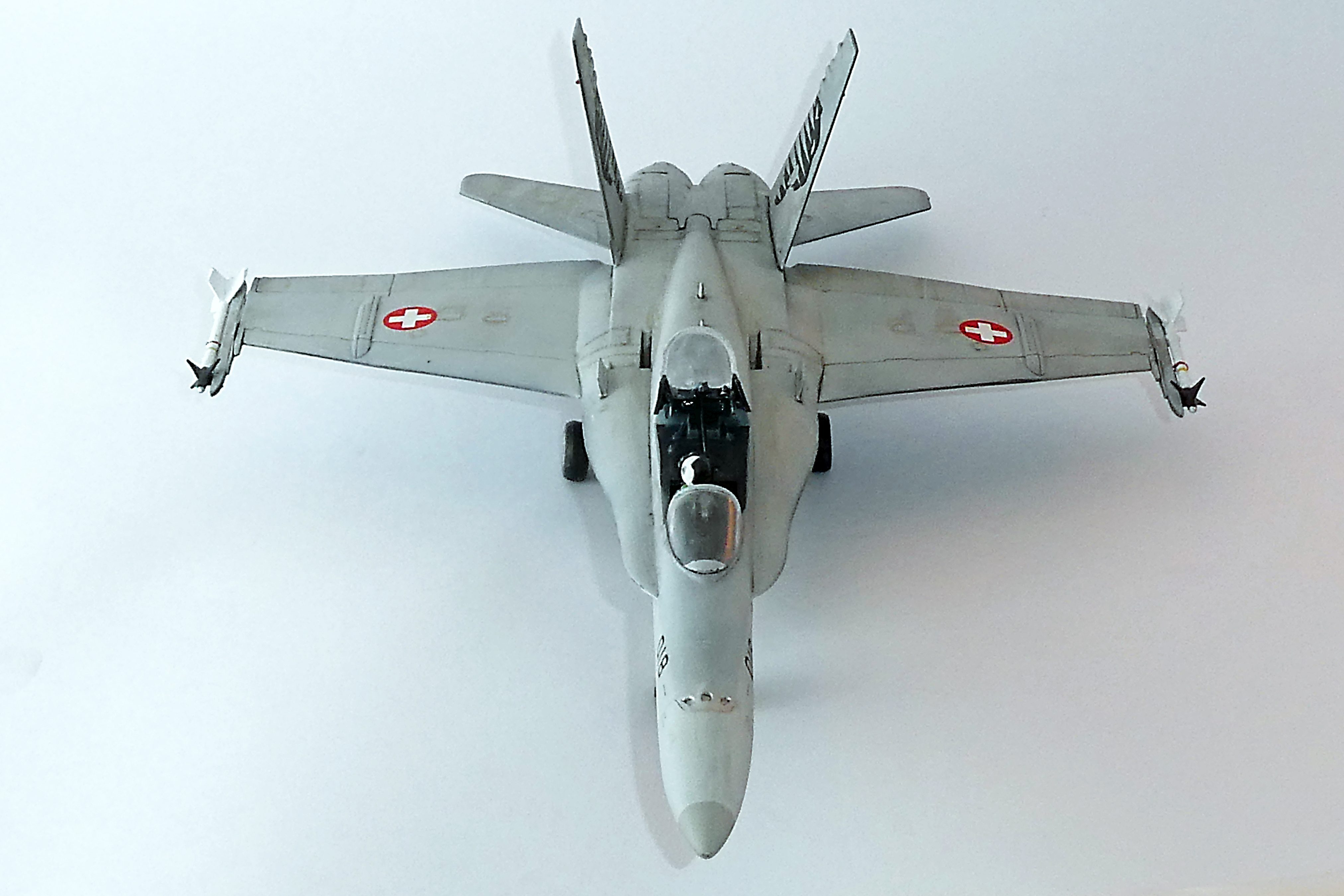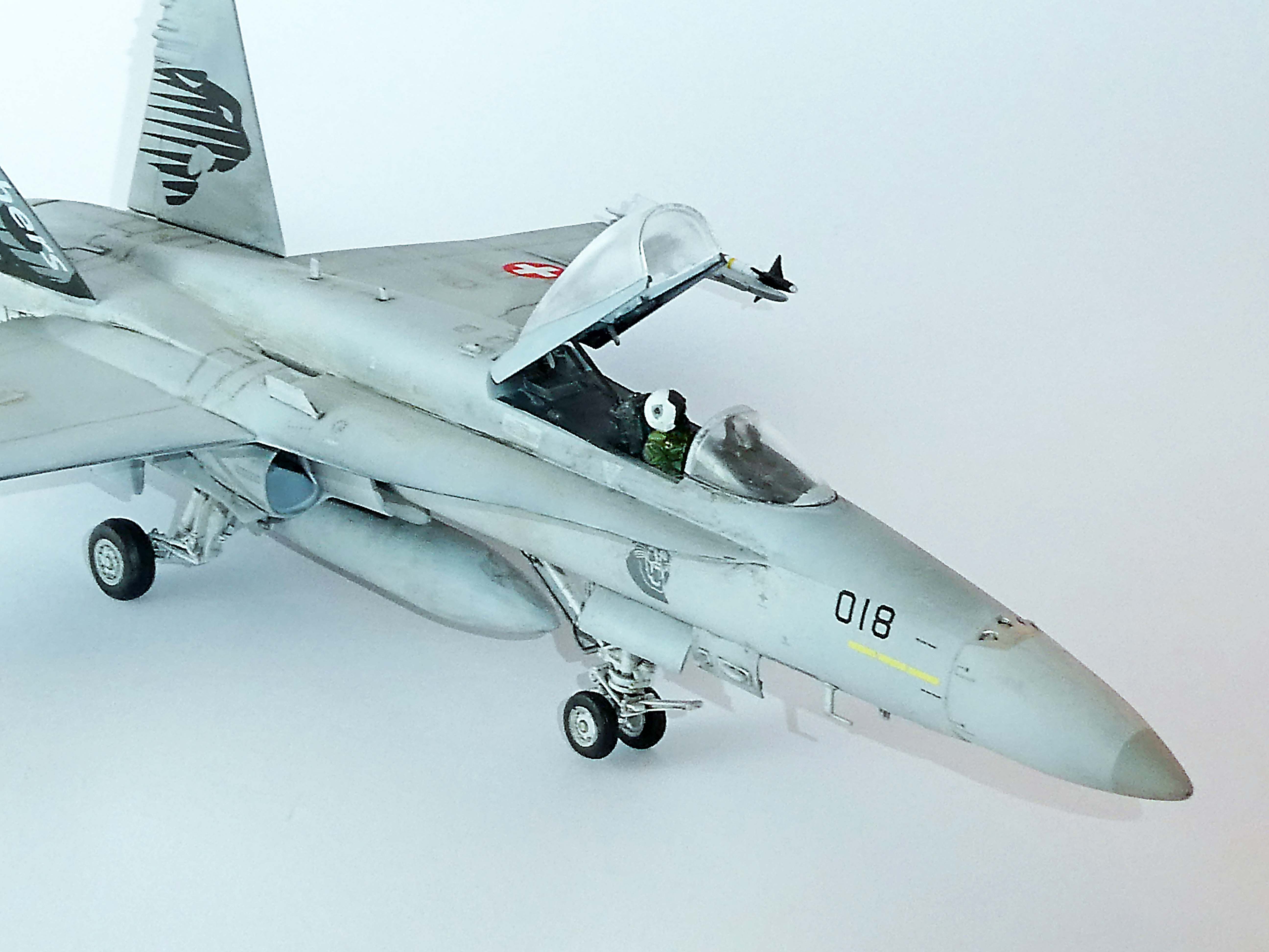 Die Seitenruder sind mit Tamiya X-18 schwarz-seidenmatt gespritzt. Fahrwerk und Schächte mit Tamiya weiss-matt.