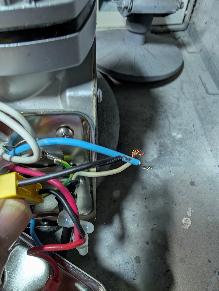 Die Leitung geht an den AN/AUS-Schalter. Das Gehäuse sollte ich aufkriegen und dann den neuen Druckschalter anschließen können.
