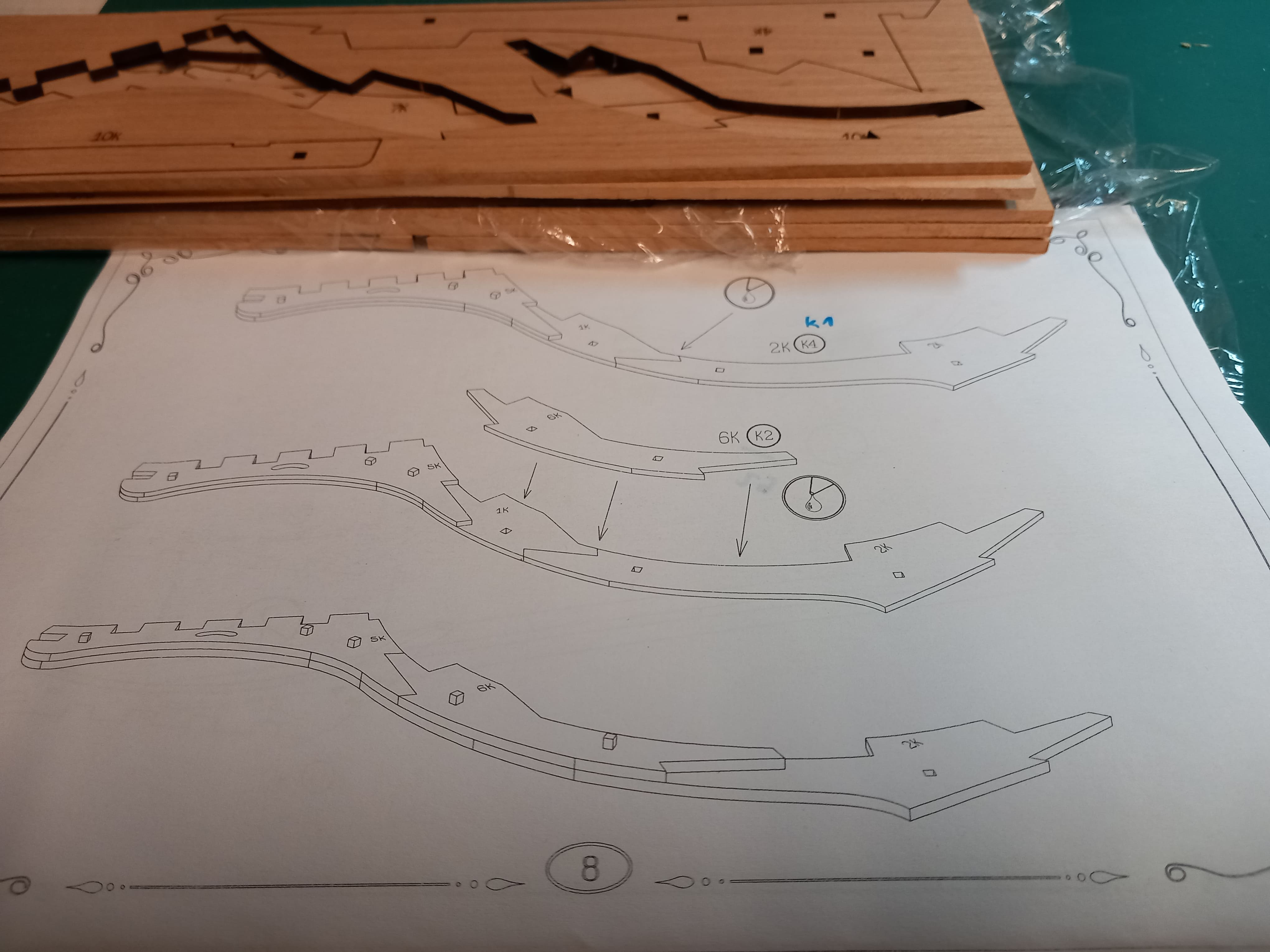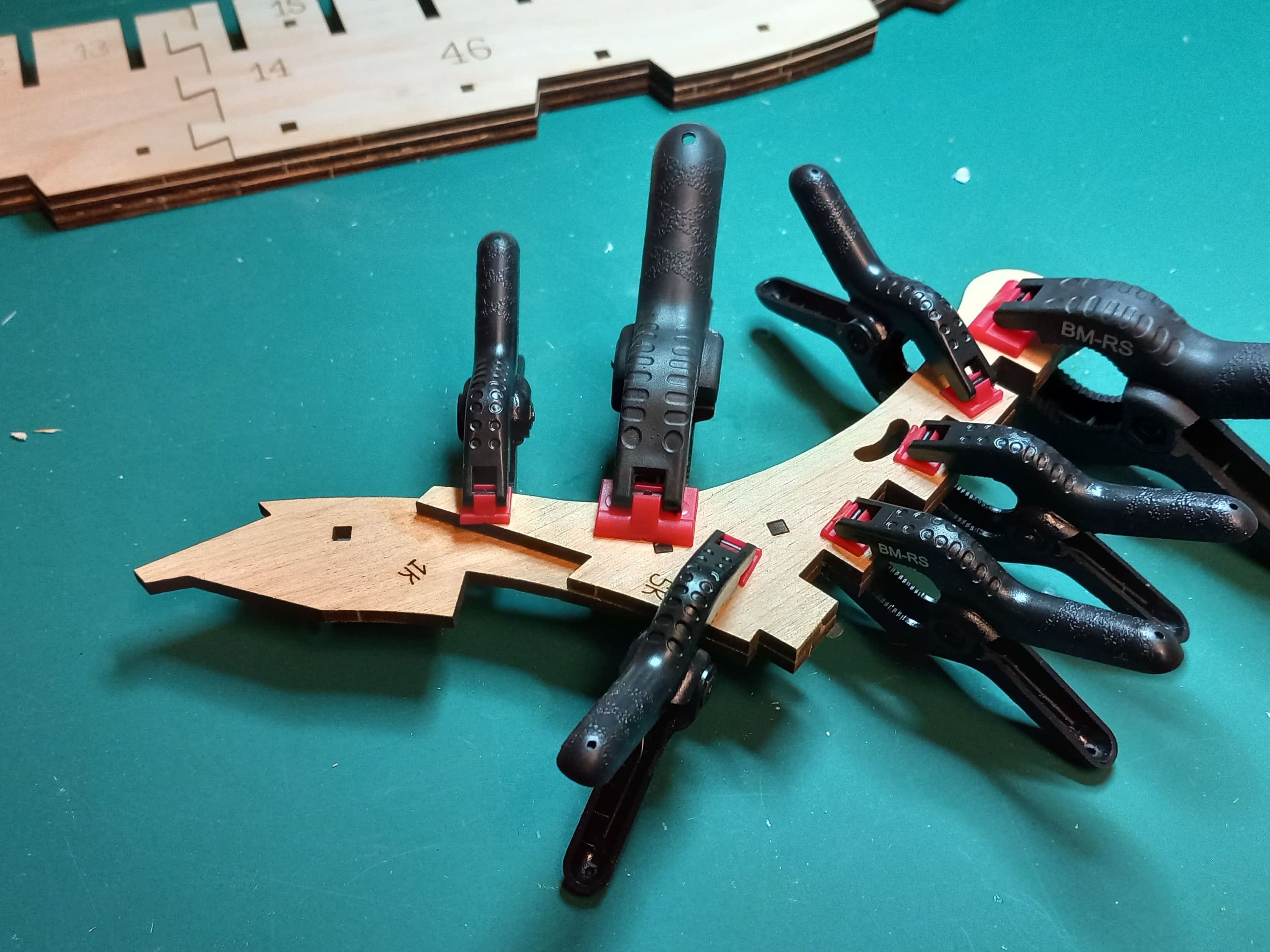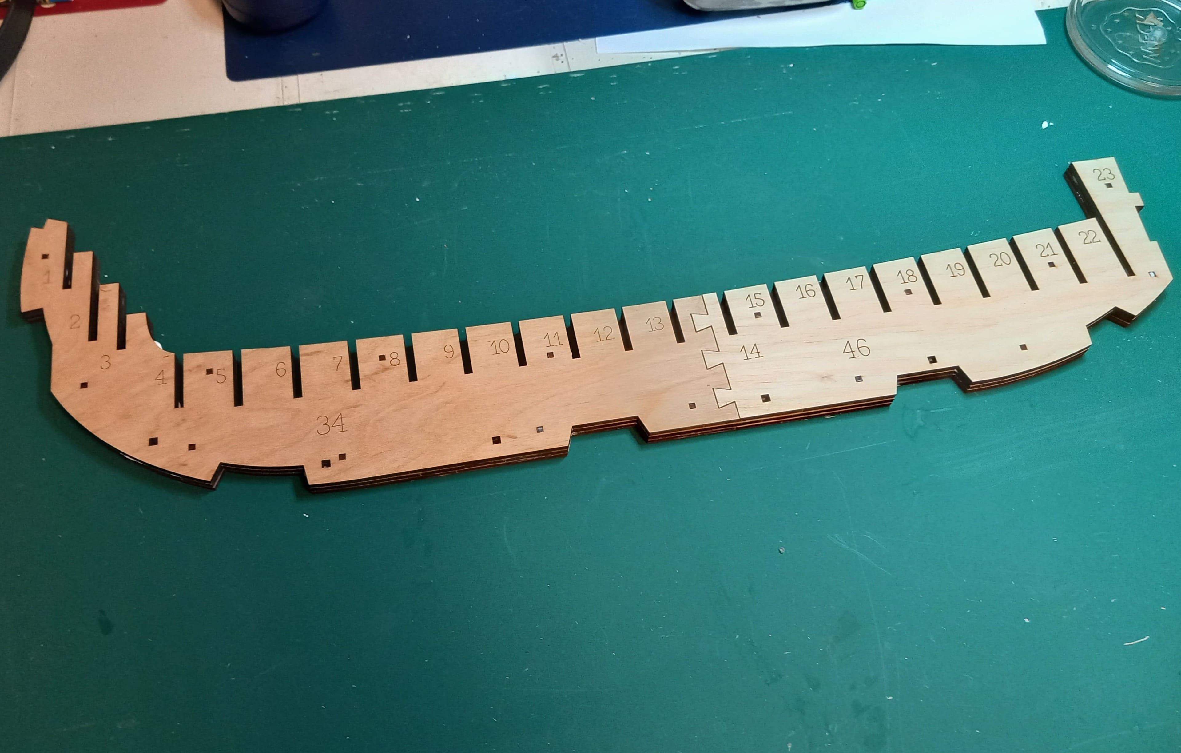 Es geht langsam voran. Der Kiel ist jetzt komplett zusammengesetzt. Wieder mit 3 Lagen Holz. Auch die untere Begrenzung vom Rumpf mit den ausgeschnittenen Kerben für die Spanten ist fertig geschliffen. Hier musste viel weggenommen und abgeschleift werden. Ein Problem sind die Videos auf Youtube. Die Übersetzung vom Ukrainischen ins Deutsche ergibt oft keinen Sinn. Somit muß ich mir die Videos immer wieder ansehen um zu erkennen was gerade gemacht wird und wie es gemeint ist. Das kostet Zeit. Gruß Ingo