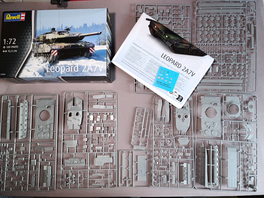 Das Objekt der Begierde wird Revells neuer Leopard 2A7V werden. Ich war Recht überrascht dass der Karton so ein Brocken ist, was aber daran liegt, dass Revell hier acht Spritzlinge beilegt. Man kann fast zwei Panzer bauen, aber das zeugt davon das man in Bünde viel Wert auf exakte Details gelegt hat.