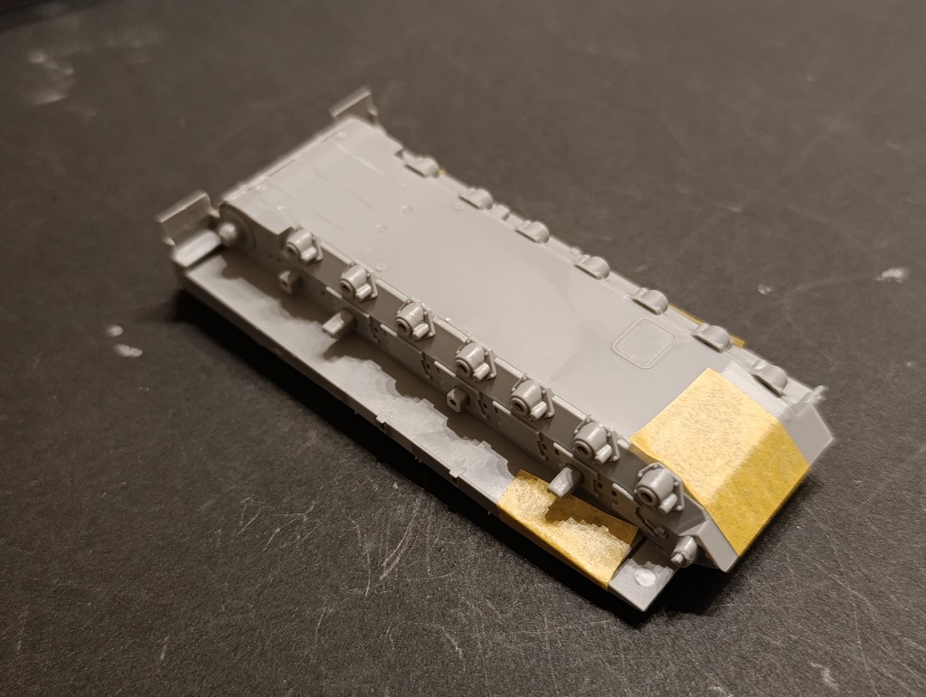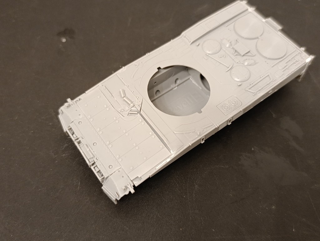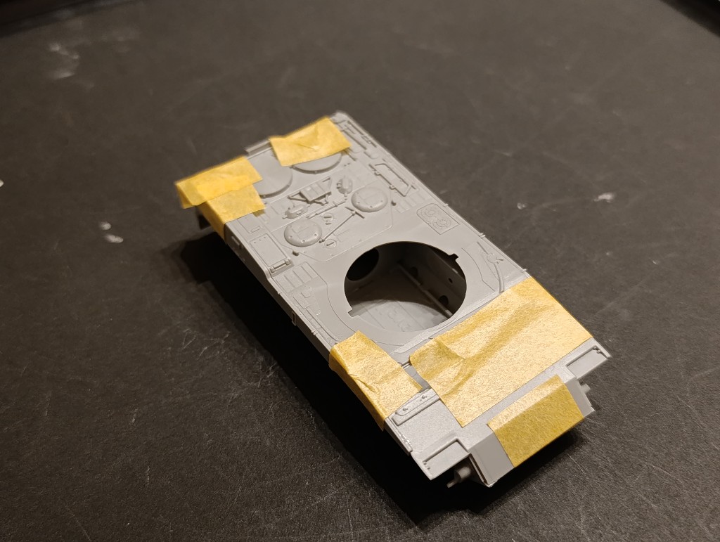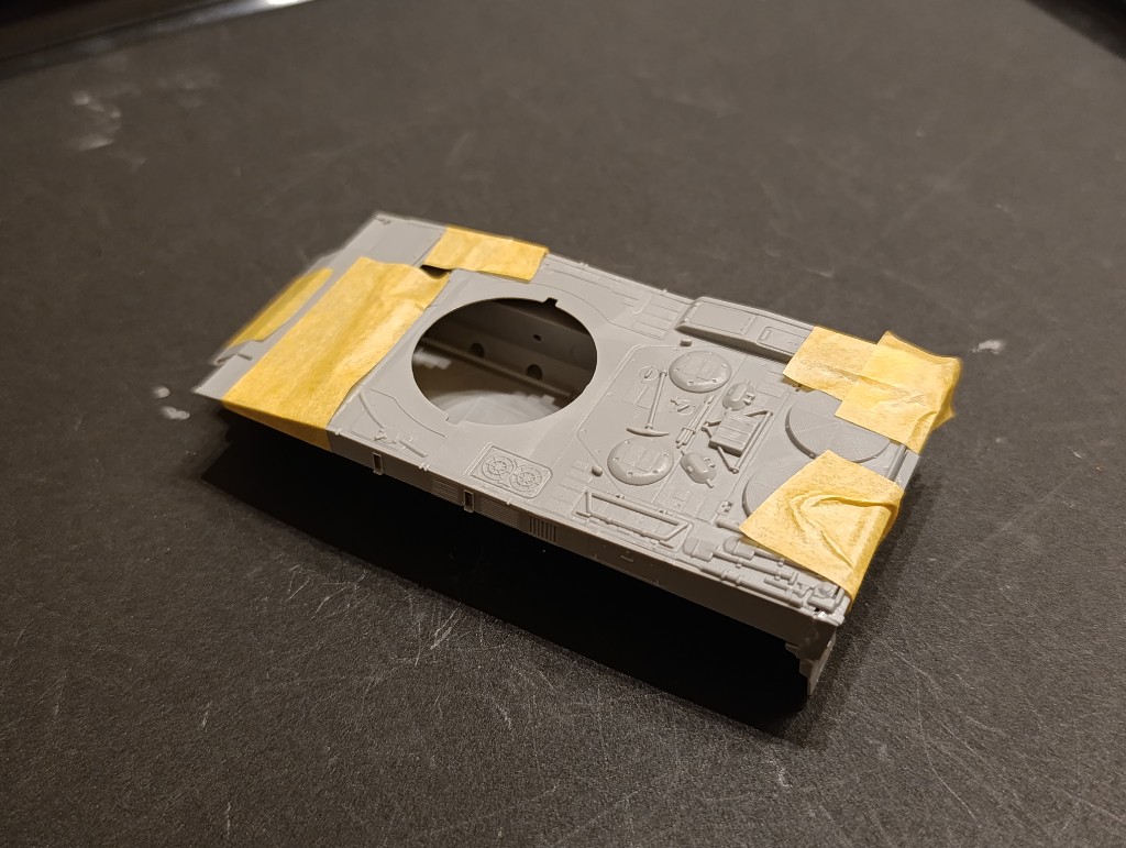 Der ganze Bauspaß ging direkt an der Wanne des Panzers los. Hier musste man aber mit Tape fixieren, sonst wären größere Lücken entstanden