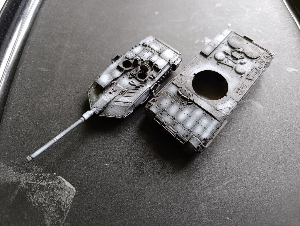 Dann habe ich den Panzer auch schon grundiert mit einem schönen preshading.