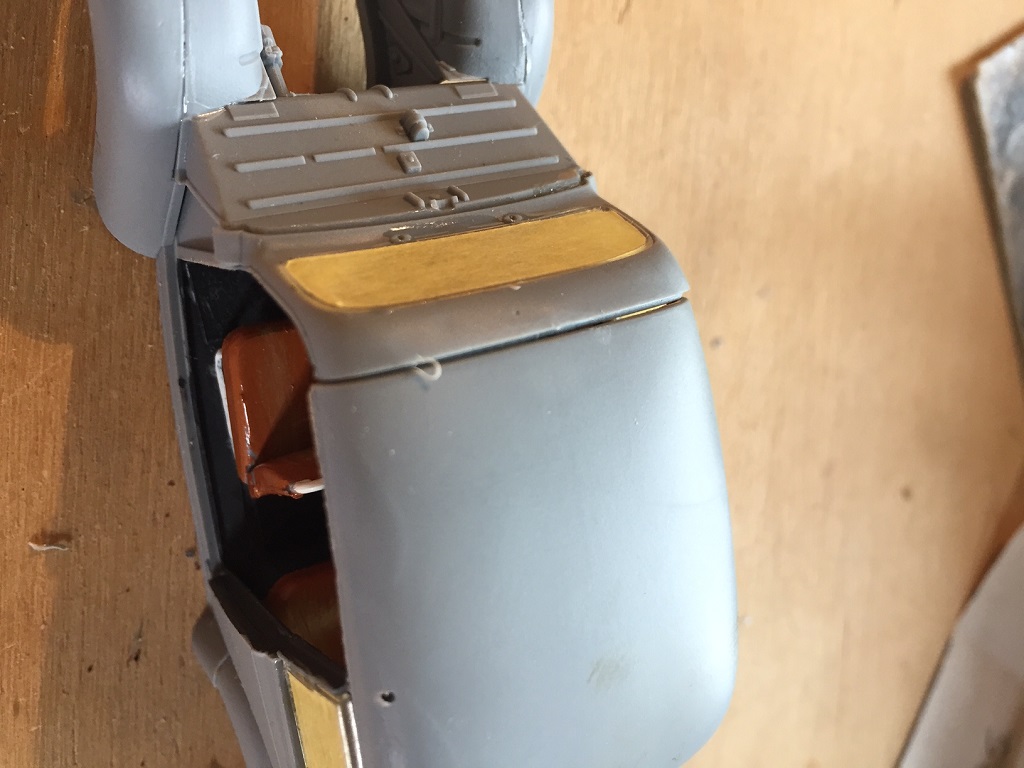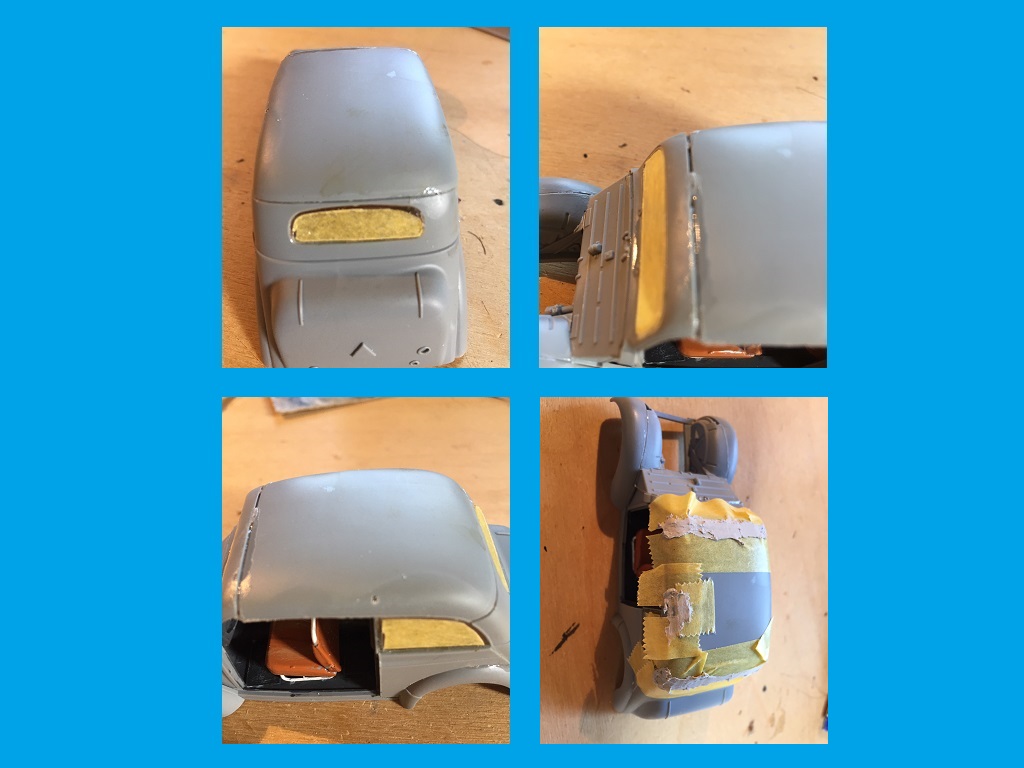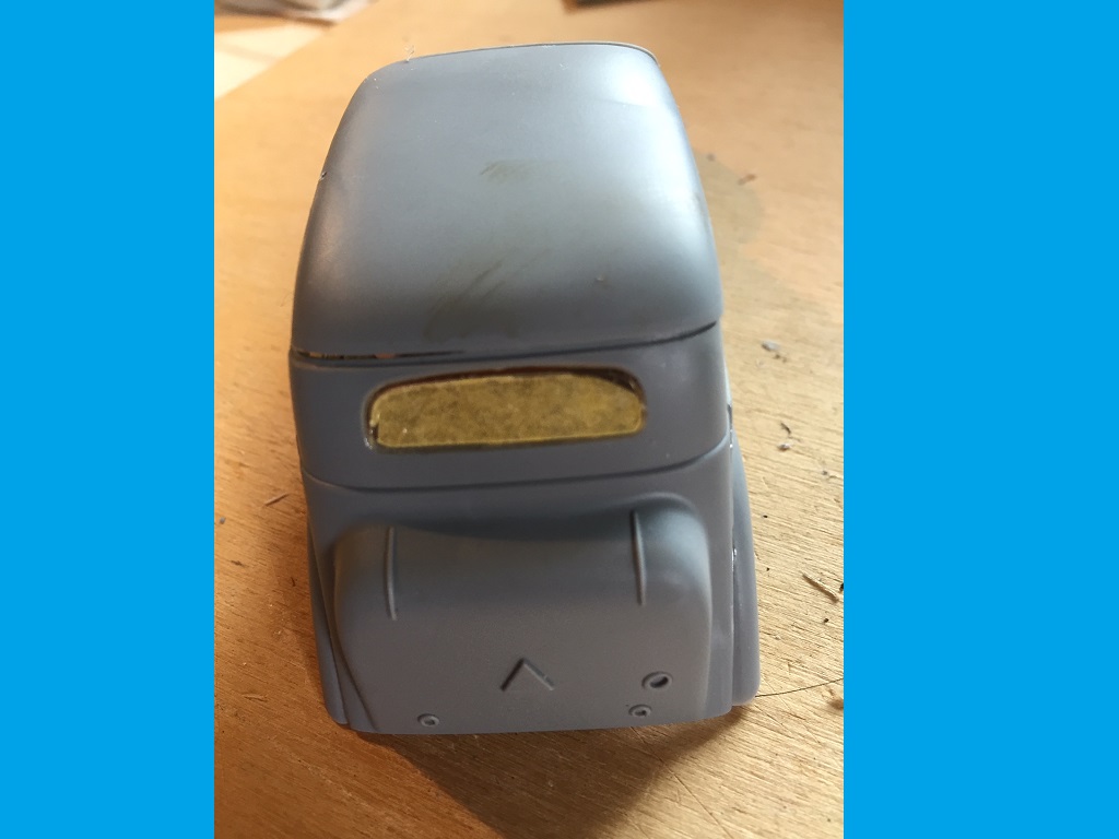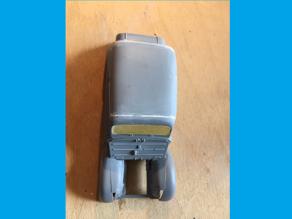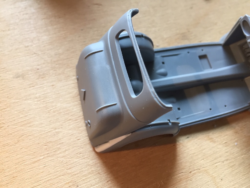 Auf dem Dach gibt es zwei Klebestellen, um diese besser zu verkleben und zu verspachteln, baue ich nun erst die komplette Oberkarosserie. Los geht es mit der Rückwand, diese wird mit Color Stop angeklebt. .