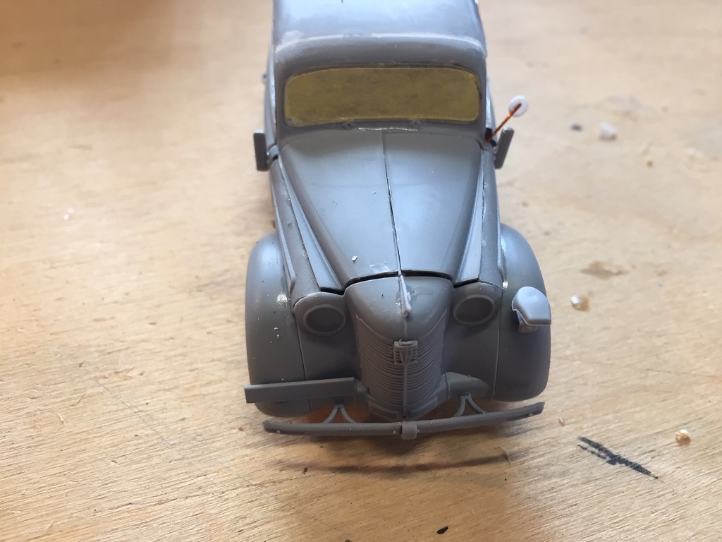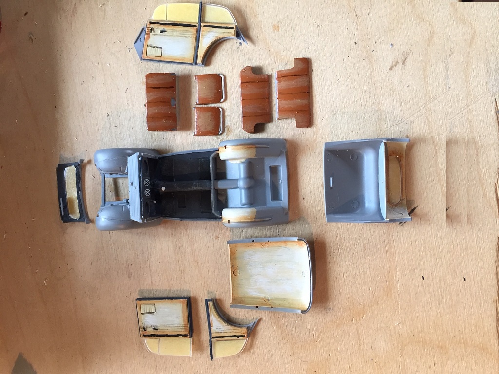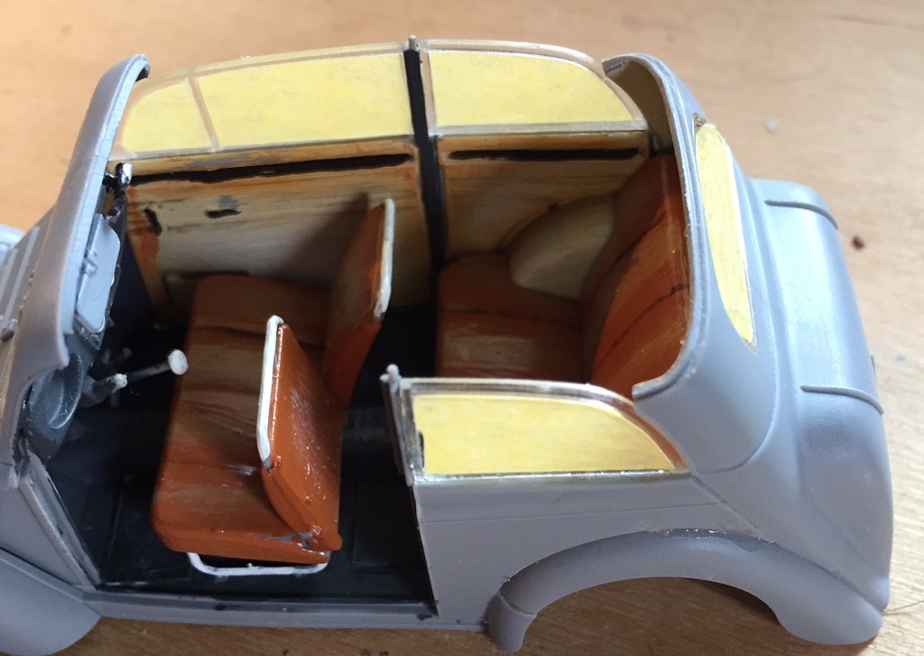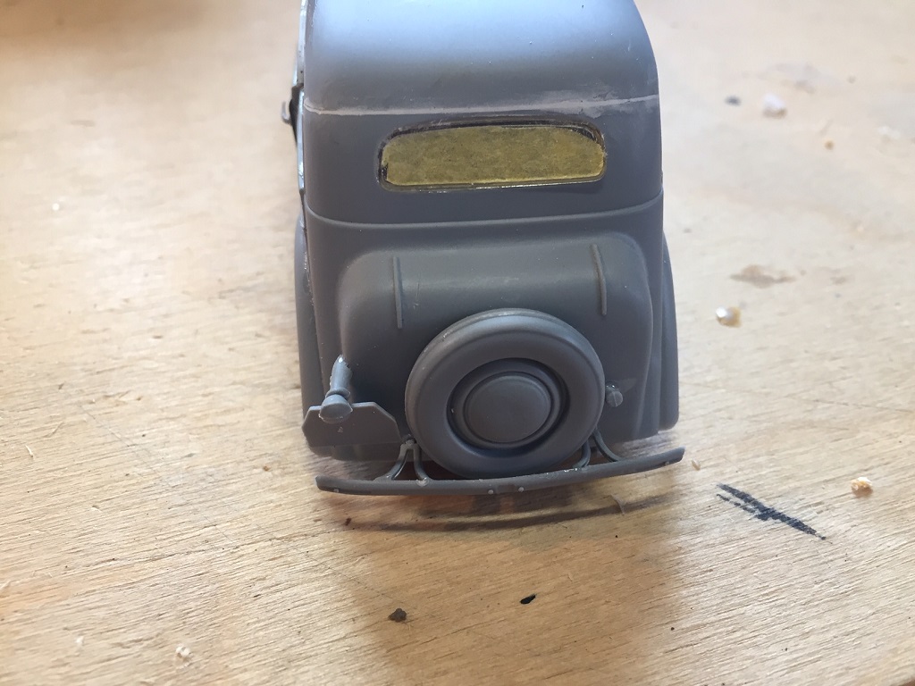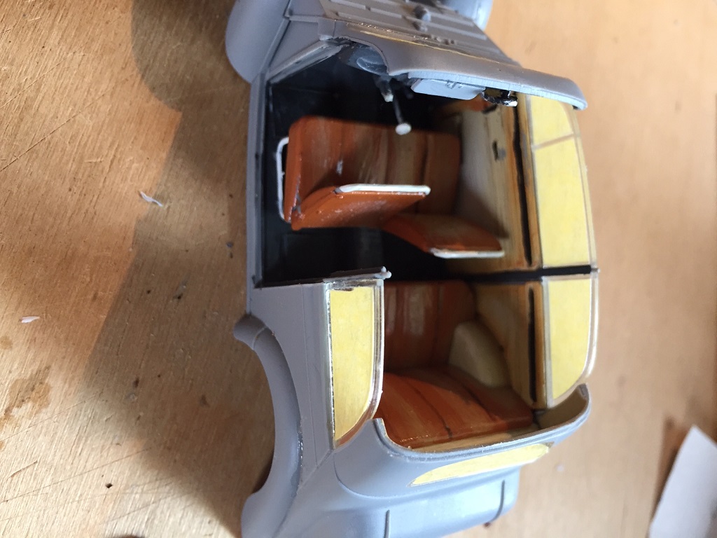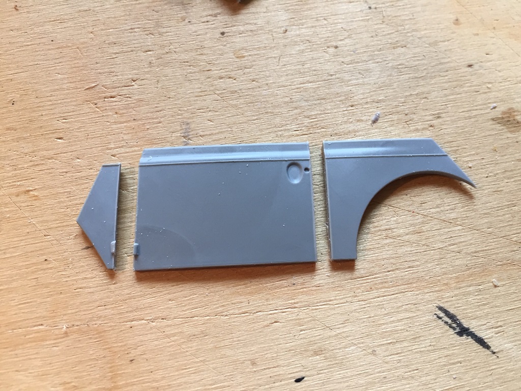 Auf dem Dach gibt es zwei Klebestellen, um diese besser zu verkleben und zu verspachteln, baue ich nun erst die komplette Oberkarosserie. Los geht es mit der Rückwand, diese wird mit Color Stop angeklebt. .