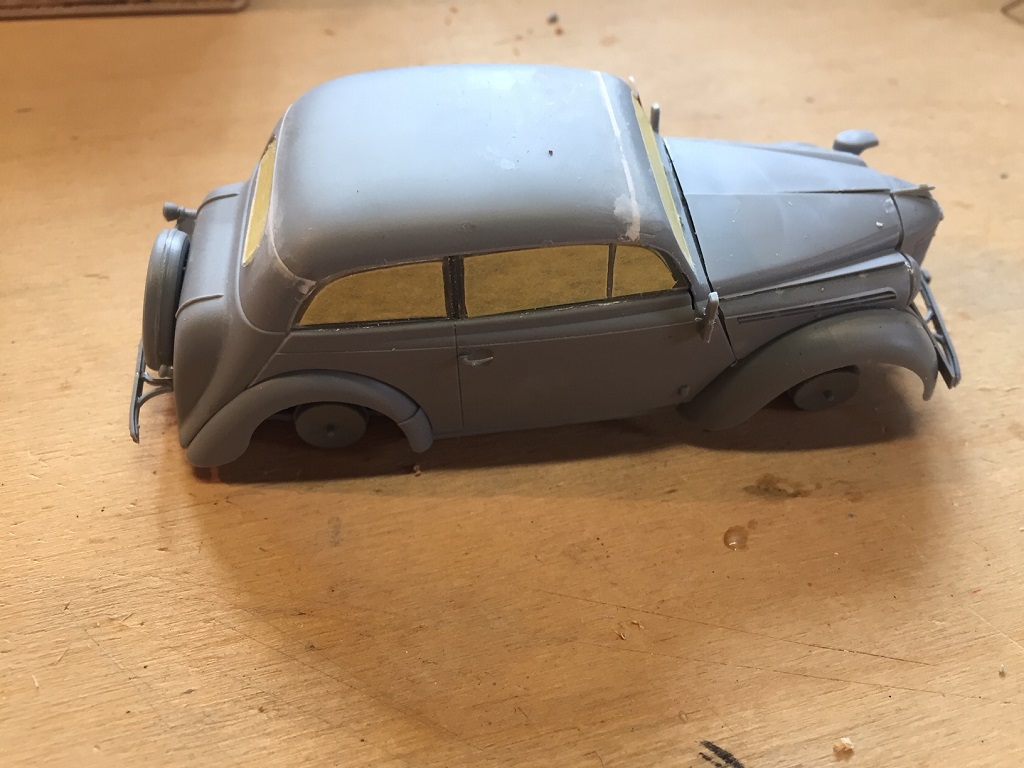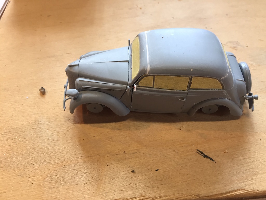 Wie ich schon sagte, geplant war für ein Flak-Dio eine Kleinigkeit zum Auflockern. Da das Dio in der Heimat angesiedelt war wollte ich kein rein militärische Fahrzeug nehmen. Meine Wahl fiel daher auf den Opel Kadett. Diesen Bausatz habe ich in Holzminden auf der Modellbauausstellung zu Gunsten der deutschen Kinderkrebshilfe "gekauft". Diese Ausstellung findet jedes Jahr ( leider wahrscheinlich zum letzten Mal, wenn kein Nachfolger sich bereit erklärt ) in der Pionierkaserne in Holzminden statt. Neben vielen Modellen und Händlern. gib es auch Original-Modelle der Pioniertruppen der Bundeswehr und Nato zu sehen. Neben einigen Anderen, gibt auch Revell gegen eine Spende Modelle für die Kinderkrebshilfe ab. Der Bausatz war ohne Karton und Bauplan, aber den Bauplan findet man im Netz. Und so wanderte der Opel gegen ein Spende in meinen Fundus. Nebenbei wundert es mich immer das die Kinderkrebshilfe auf private Spenden angewiesen ist. Aber wenn Waffen für Kriegsgebiete ( Ukraine ) und Radwege in Peru wichtiger sind, bleibt halt nur Private Spenden übrig. Aber nun zum Modell. .