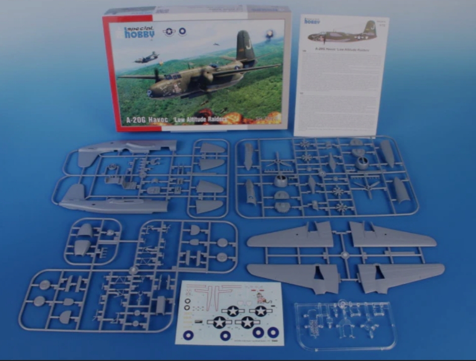 Es ist nicht das erste Mal, dass ich eine HAVOC von Special Hobby baue. Denn schon vor über ein Jahr hatte ich eine A-20B der sowjetischen roten Luftwaffe gebaut gehabt. Jetzt die spätere Variante als sogenanntes Gunship, mit schweren Maschinengewehren in der Nase. Eine ähnliche B-25 Mitchell hatte ich auch schon Mal vor zwei Jahren gebaut. Die Bausatzform stammt noch von MPM und ist mittlerweile in dutzenden mal aufgelegt wurden. Von der früheren Havic hat Special Hobby bzw Azur eine neue Form entwickelt.