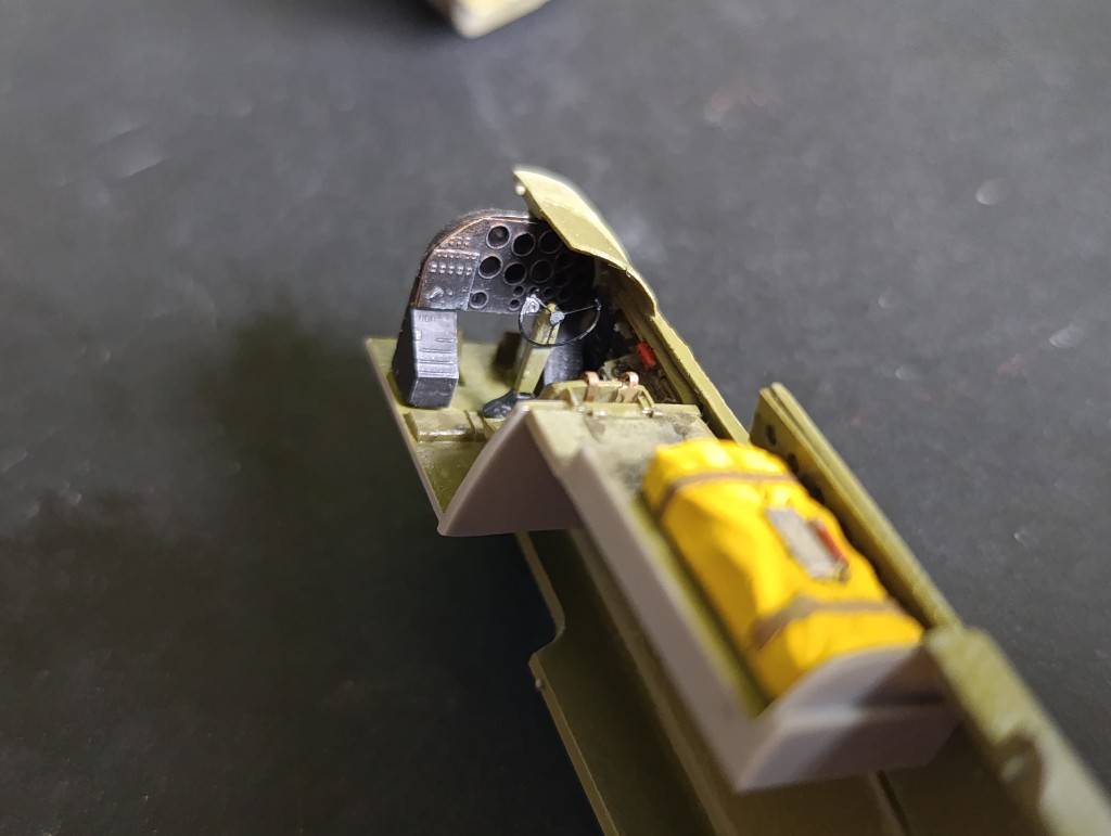 Nun da die Farbe soweit sitzt, durften die letzten Kleinteile verbaut werden. Mit Ausnahme des Cockpitdachs natürlich, da die Maschine ja geöffnet dargestellt werden soll.