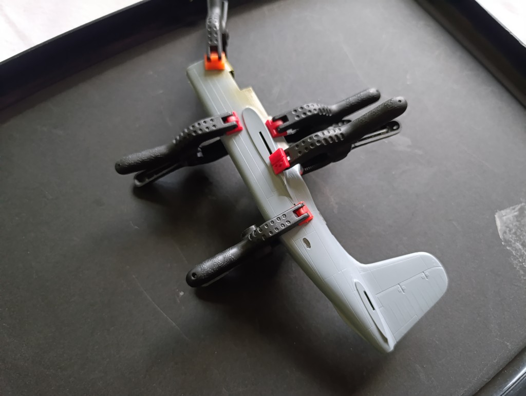 Ich habe tatsächlich mit keiner silbe mehr daran gedacht, dass die Passung so schlecht war. Man sieht es ja an dem großen Einsatz vom Putty. Ich hab ja vor gut zwei Jahren schon eine A-20 gebaut und dachte eigentlich dass diese nicht so schlecht war. Aber irgendwie, naja ich hab auch schon schlechtere Bausätze gehabt, da werde ich hier auch fertig werden.