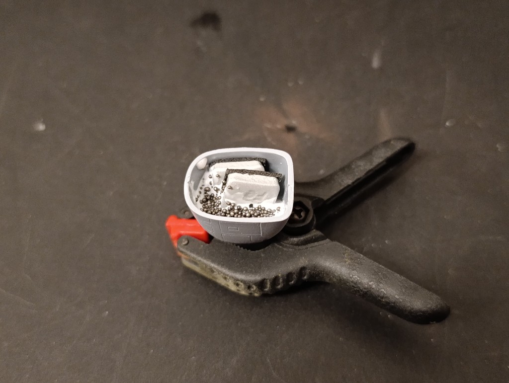 Zu guter Letzt habe ich die Nase zusammen gesetzt (ja viel Spachteln war überall notwendig) und diese mit ausreichend Gewicht versehen