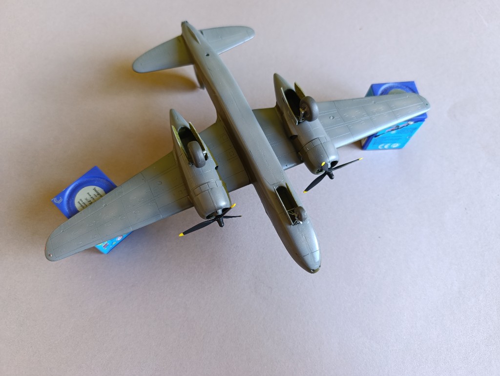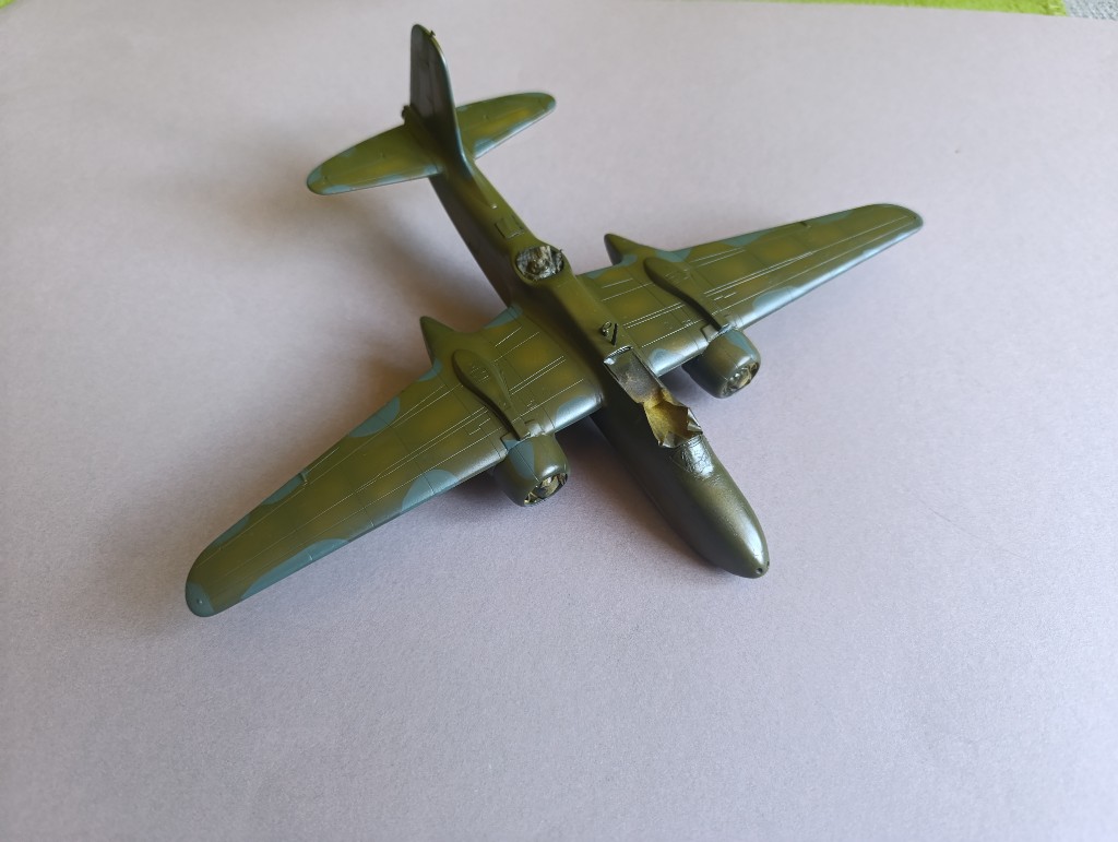 Die A-20 geht auch langsam voran. Danke genügend Spachtelmasse konnte ich den Buckel an der Nase Augenscheinlich beheben. Auch die in Mitleidenschaft gezogen Gravuren habe ich nochmal graviert.