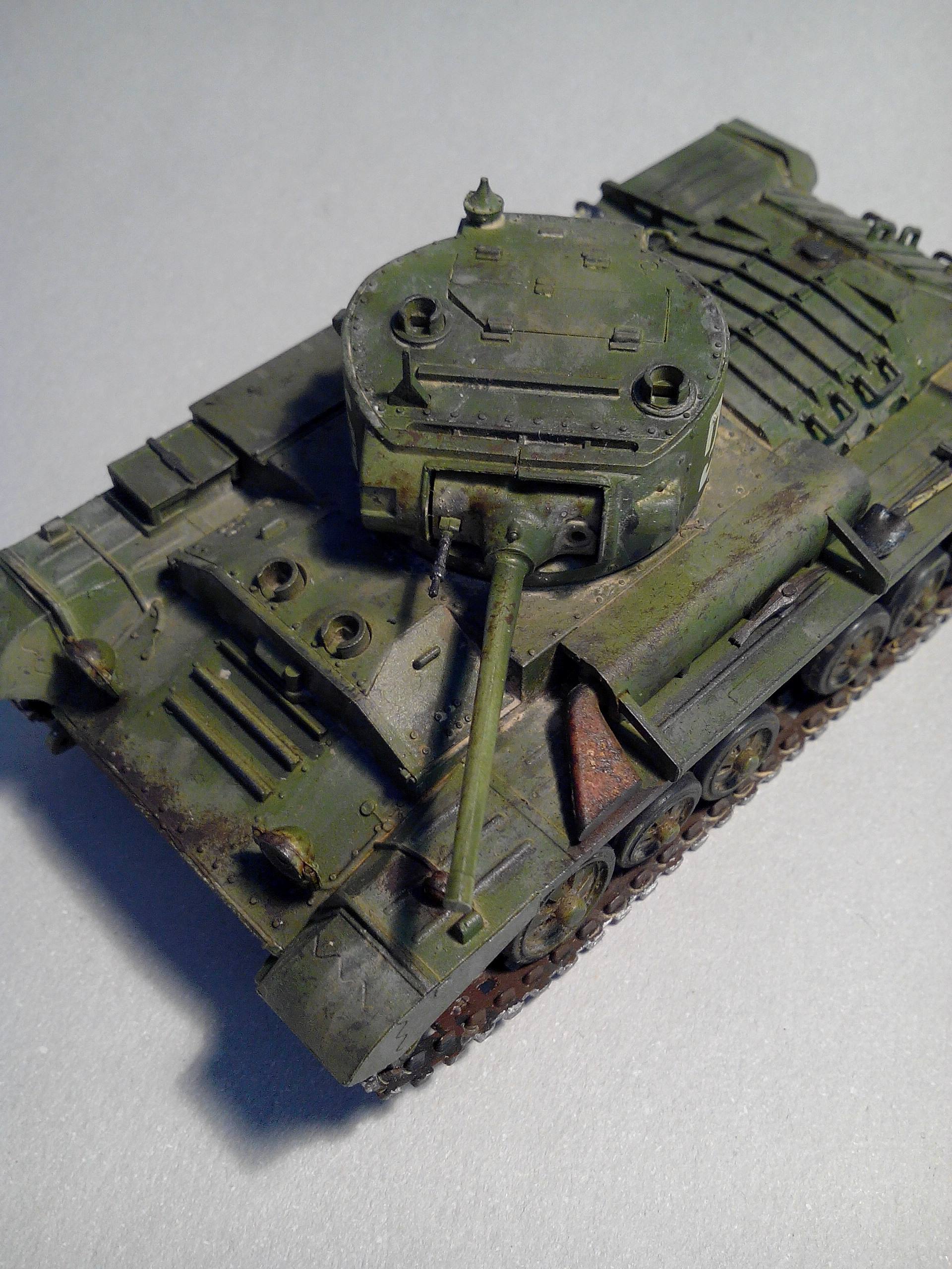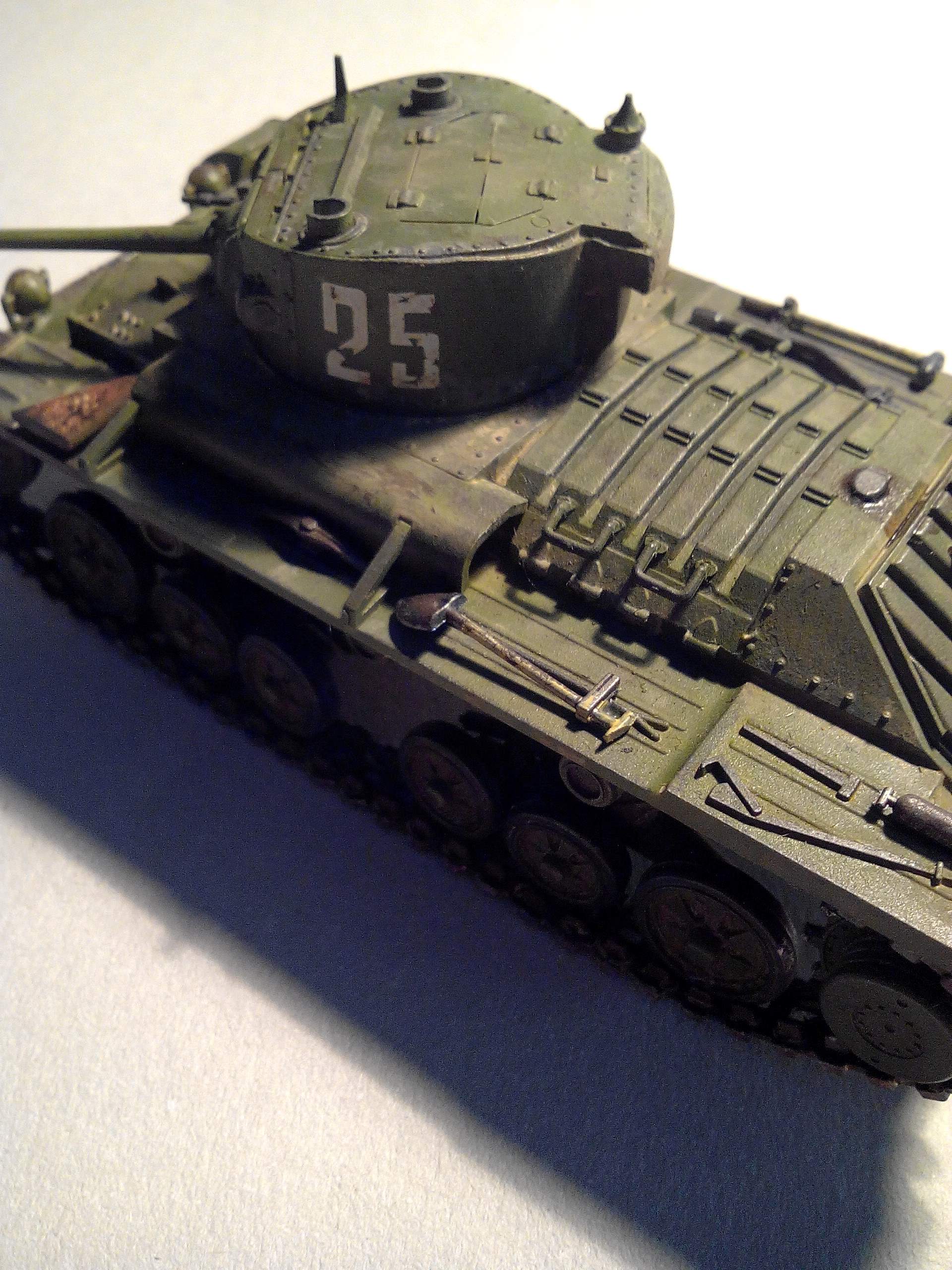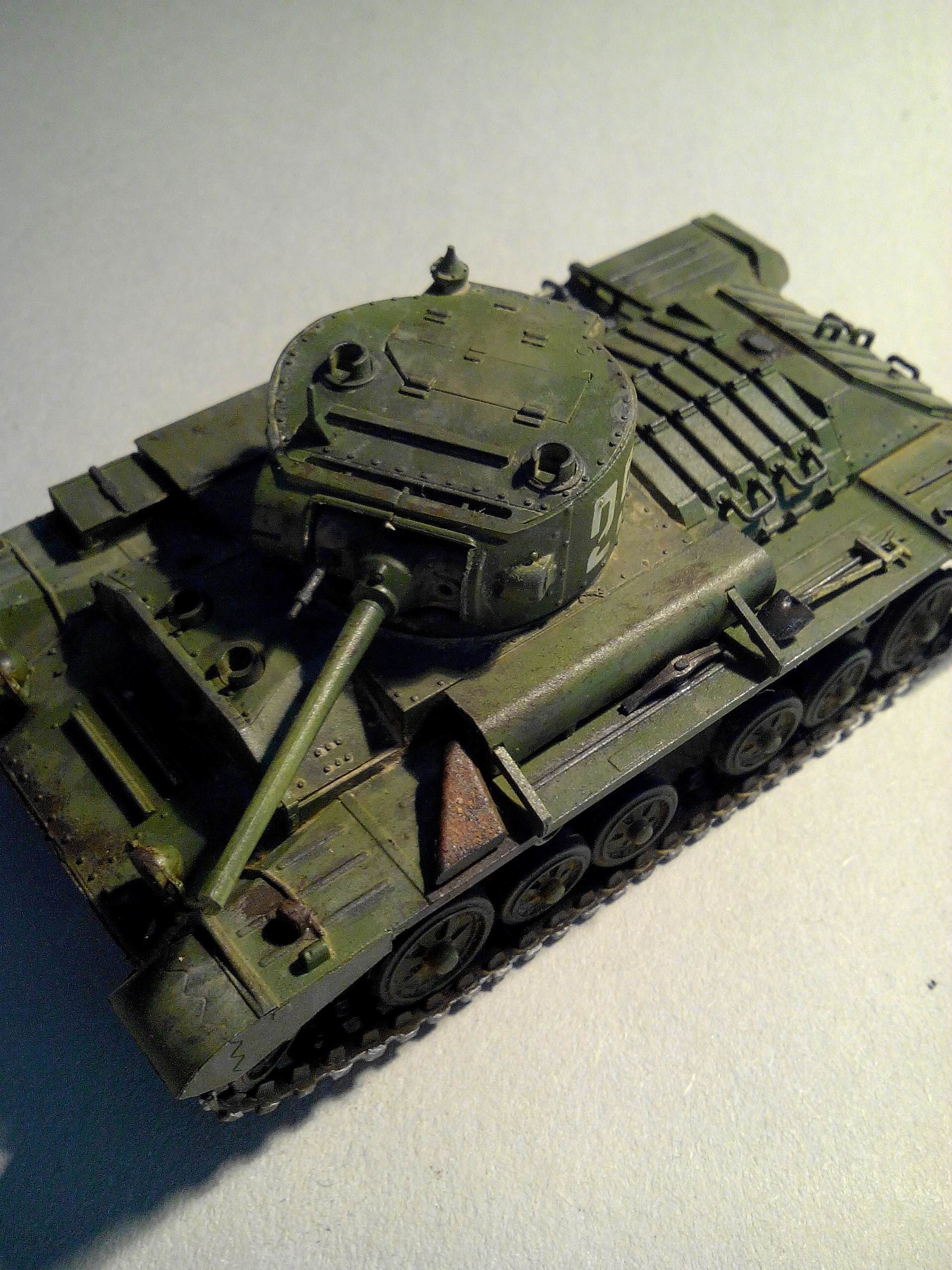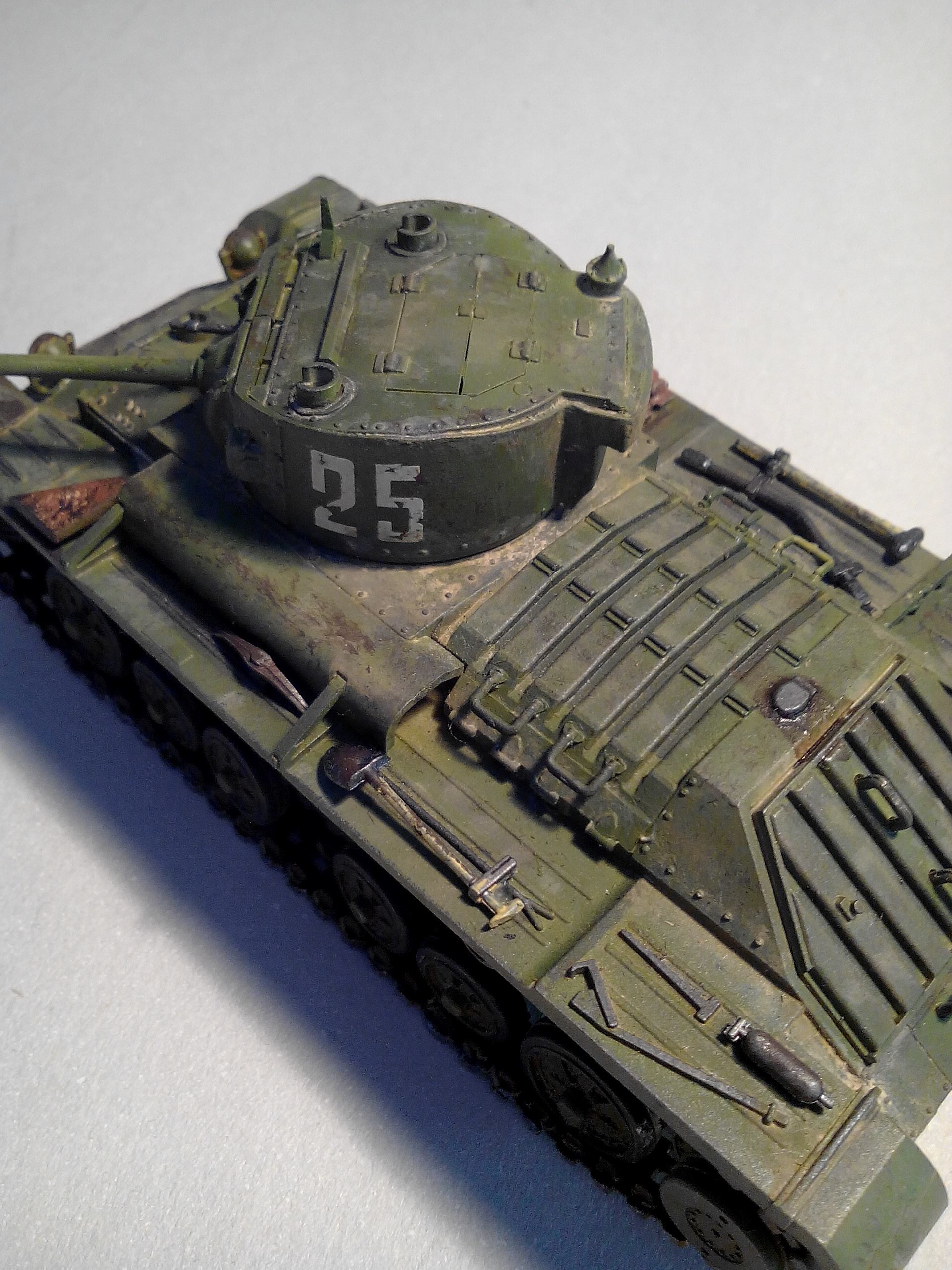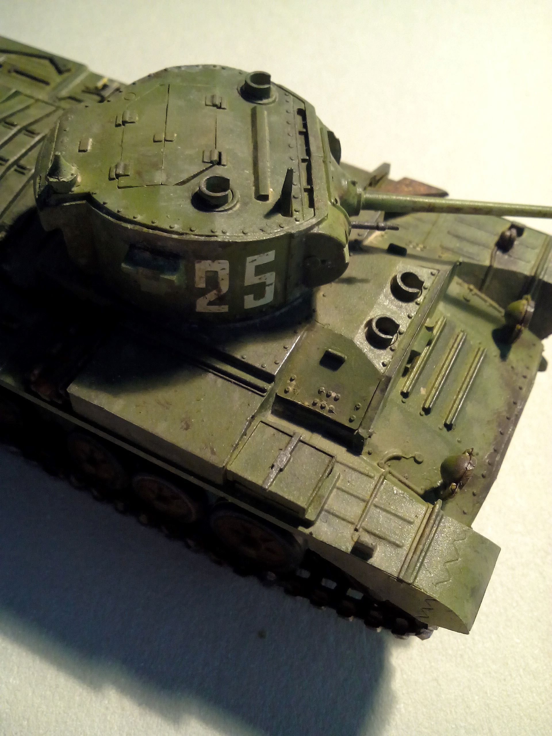 Es handelt sich um einen British Infantry Tank Mk III "Valentine" in 1/48 von Bandai, mit dem Bau wurde schon begonnen. Primer aus der Dose von AK, Farbe von MRP Light Green, mit Filter, Wash und Pigmenten von AK, Mig gealtert