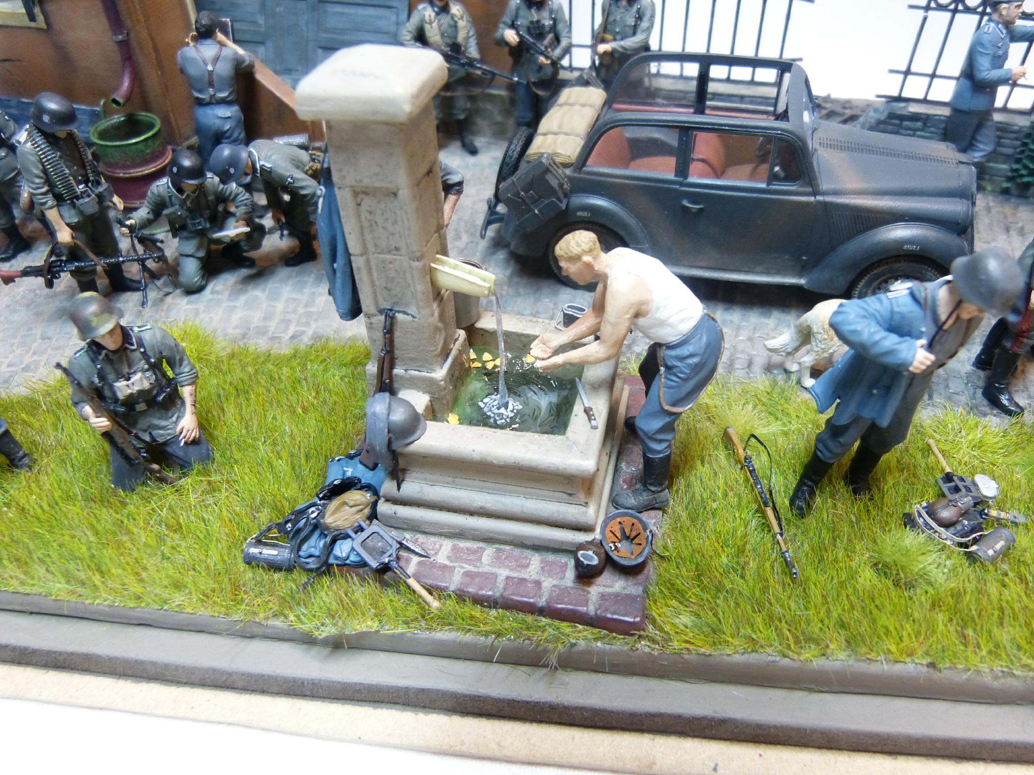 Das Brunnenwasser ist aus UV-Harz, die Uniformjacken waren im Bausatz 6791 enthalten.
