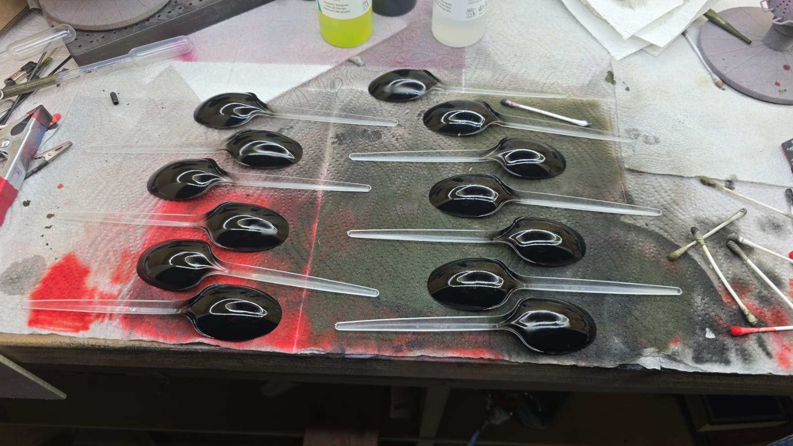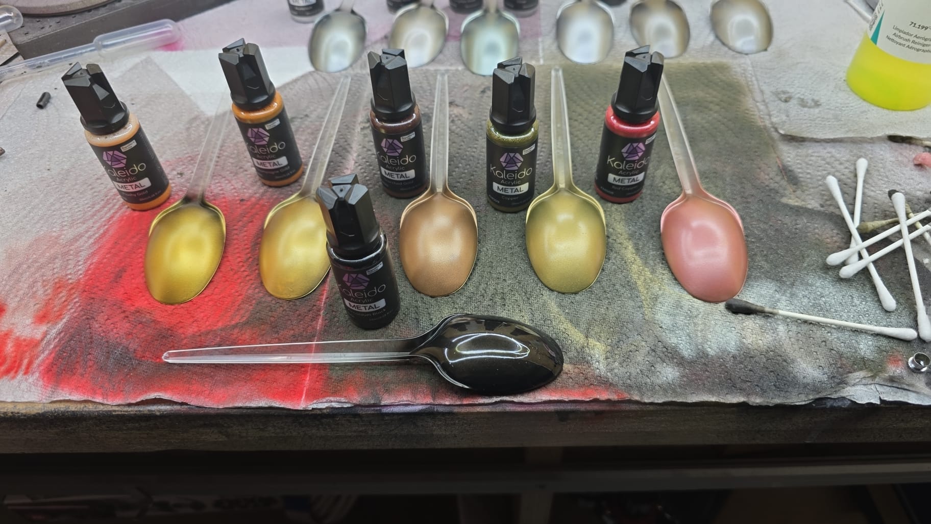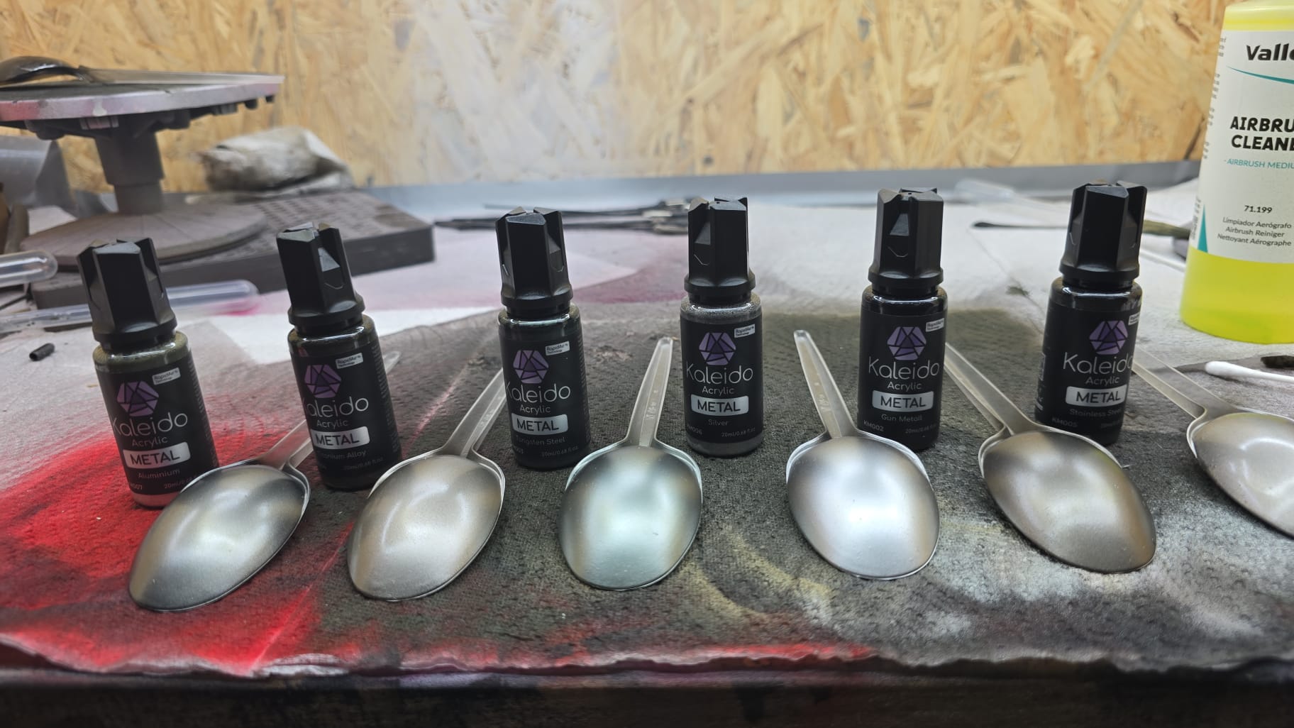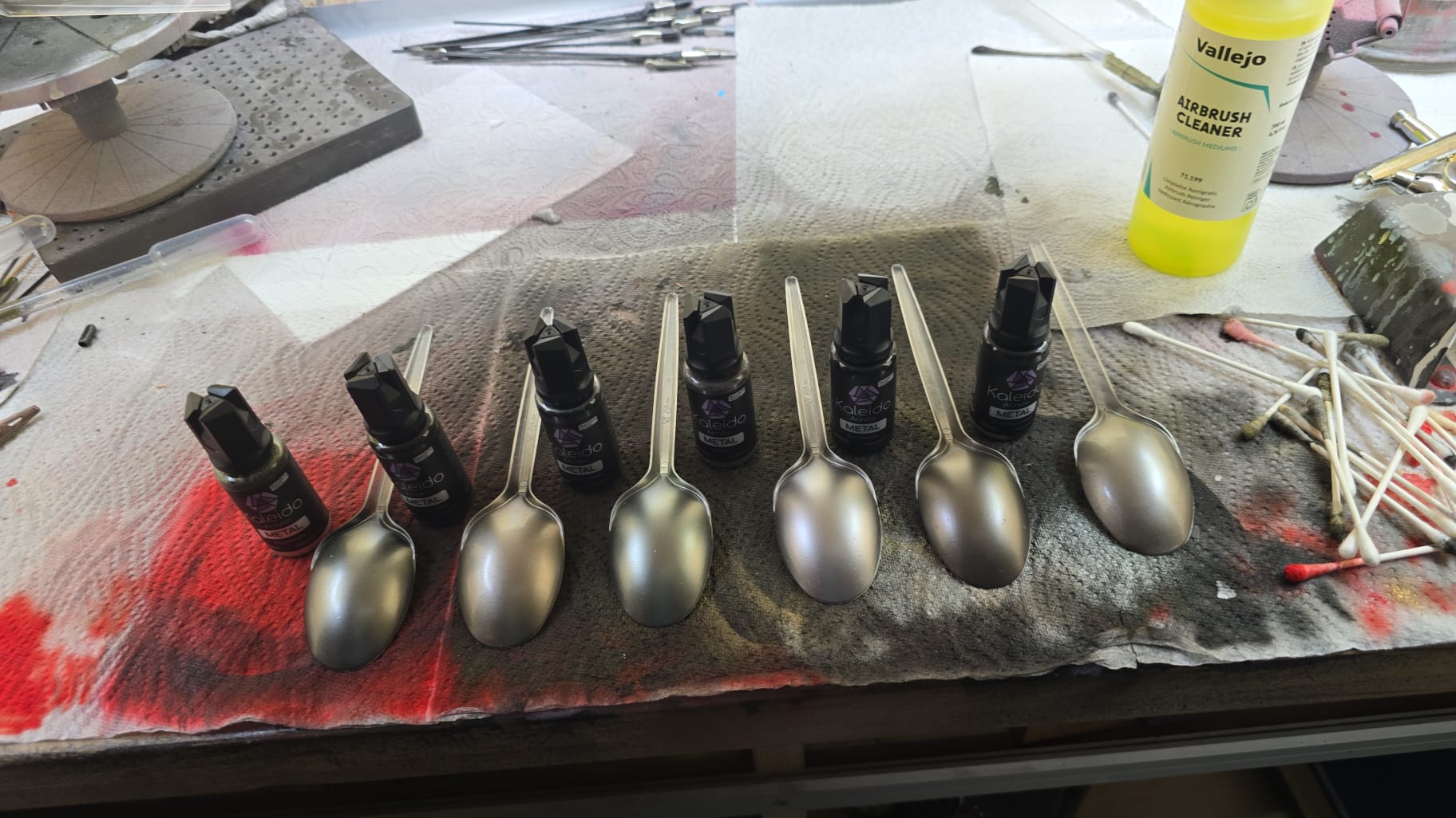 Alle Löffel wurden zuerst mit einer dünnen Schicht Primer black glossy gebrusht. Ich finde das Ergebnis absolut überzeugend, nur das Red Copper ist wohl seltsam. Da sind die Tamiya Kupfertöne besser.