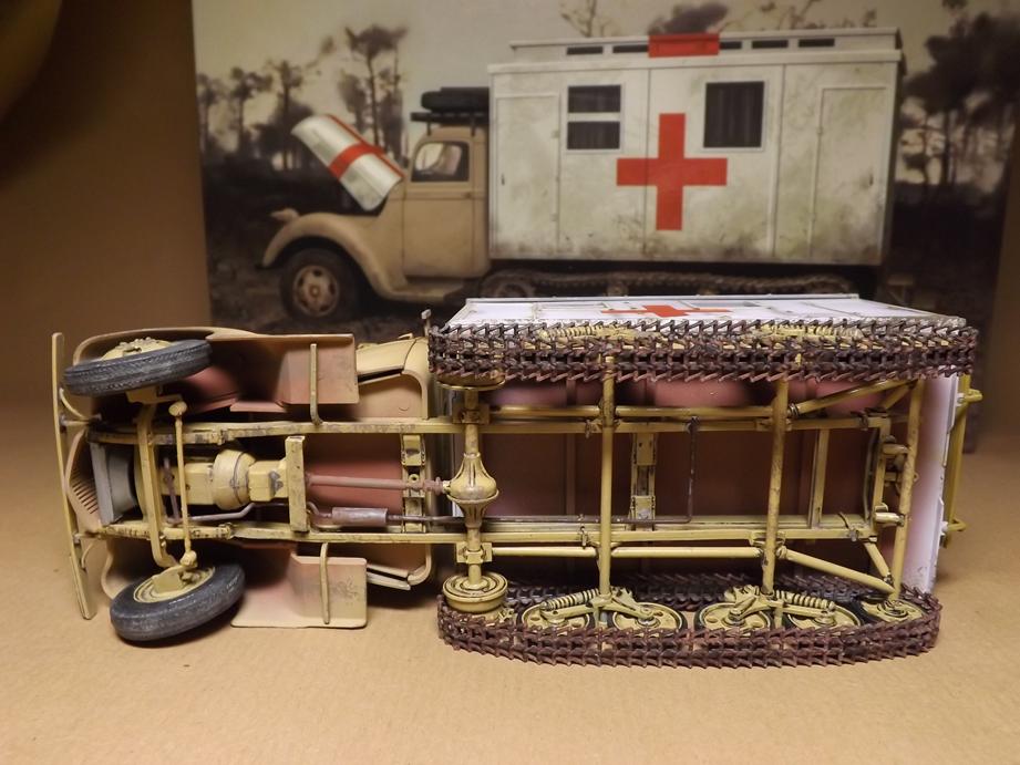 Beim liegenden Maultier ist mein zweiter Fehler zu erkennen - ich habe eine Kette verkehrt herum aufgezogen. Bei der Montage der Segmentketten passte ich noch fürchterlich auf. Ich nahm die Ketten dann aber zum Lackieren ab und beim wieder Aufziehen passte die dann halt falsch herum auch. Erst als der Kleber fest war, bemerkte ich das Missgeschick. Wenn das Fahrzeug von der Seiter her angesehen wird, ist das aber für den Betrachter nur zu erkennen, wenn er genau weiß, wie herum richtig ist ;) .