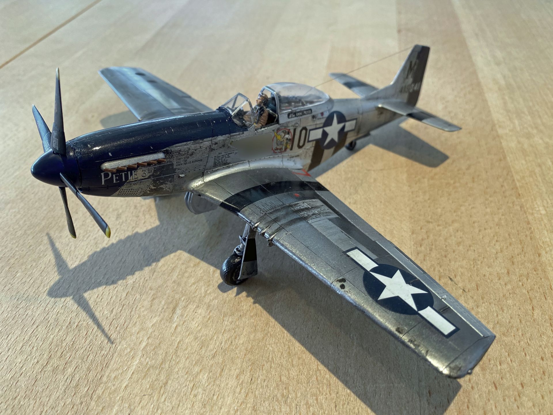 Nach sehr langer Bastelabstinenz (Bandscheibenvorfall) habe ich die Arbeiten endlich wieder aufnehmen können. Ich hatte mir 2 Bausätze der P-51D zugelegt (ICM mit schweizer Decals und Eduard). Ziel war es, zuerst an einem Modell die silberne Bemalung zu testen.