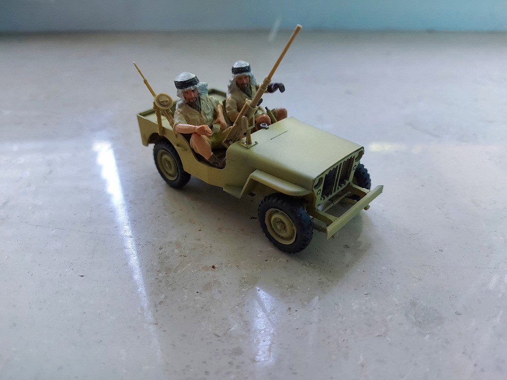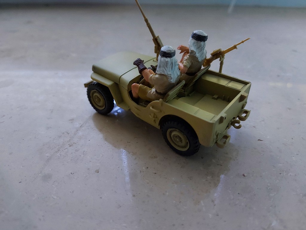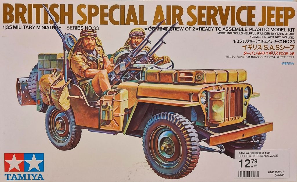Ich habe vor einigen Wochen den Tamiya SAS Jeep gekauft und bin nun auf die Idee gekommen, diesen und einen der SAS Jeeps von Dragon auf einer Patrouille darzustellen. Der Tamiyabausatz ist schon fast 50 Jahre alt und ist entsprechend nicht mehr auf dem neusten Stand. Trotzdem macht er einen guten Eindruck und gefällt mir hervorragend. Ich werden im laufe nächster Woche noch einen genaueren Vorstellung posten.