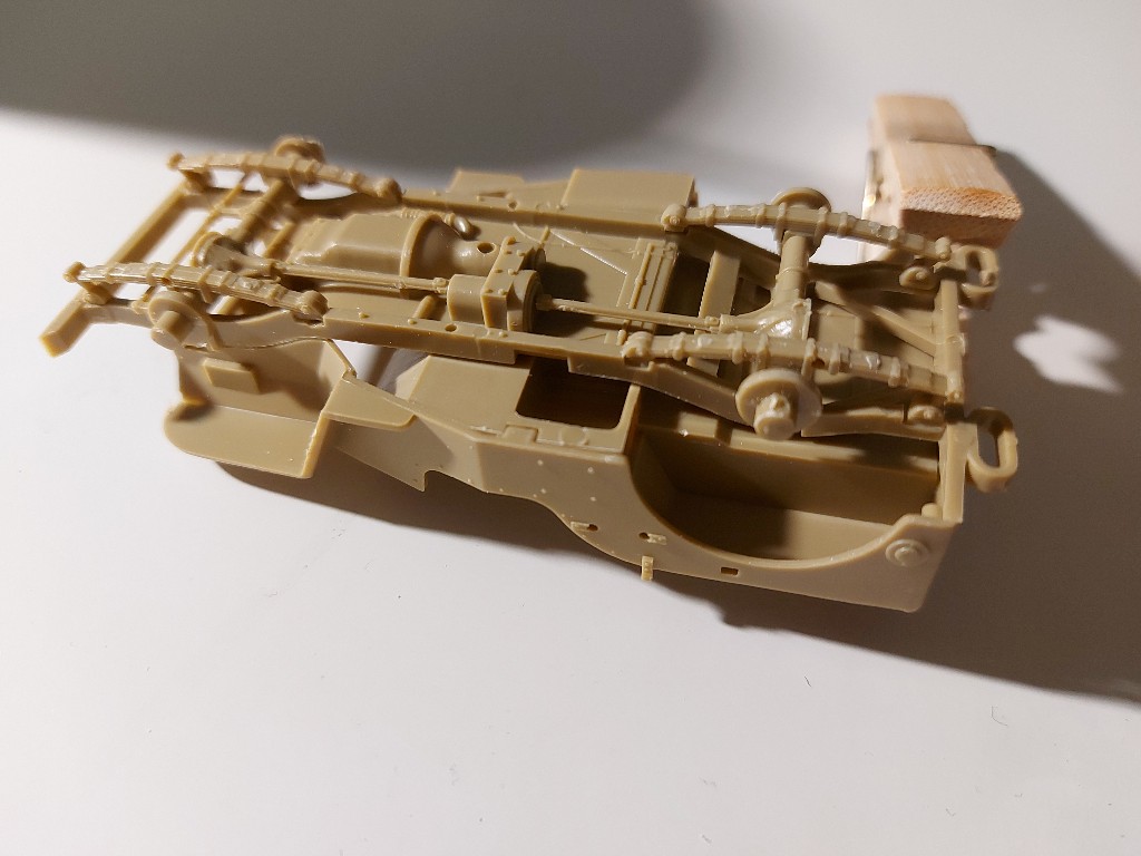 So am Willys Jeep ging es weiter, zu nöchst ist die Farbe drauf gekommen, ich habe mich für light stone von AK entschieden, da es leider keine richtige Farbangave gibt.
